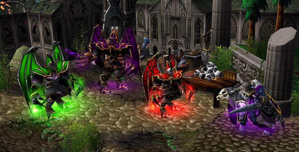 At the capital city of Lordaeron, near the ruined Palace Gardens, Archimonde's pet dreadlords discuss their current plans for the Scourge.
