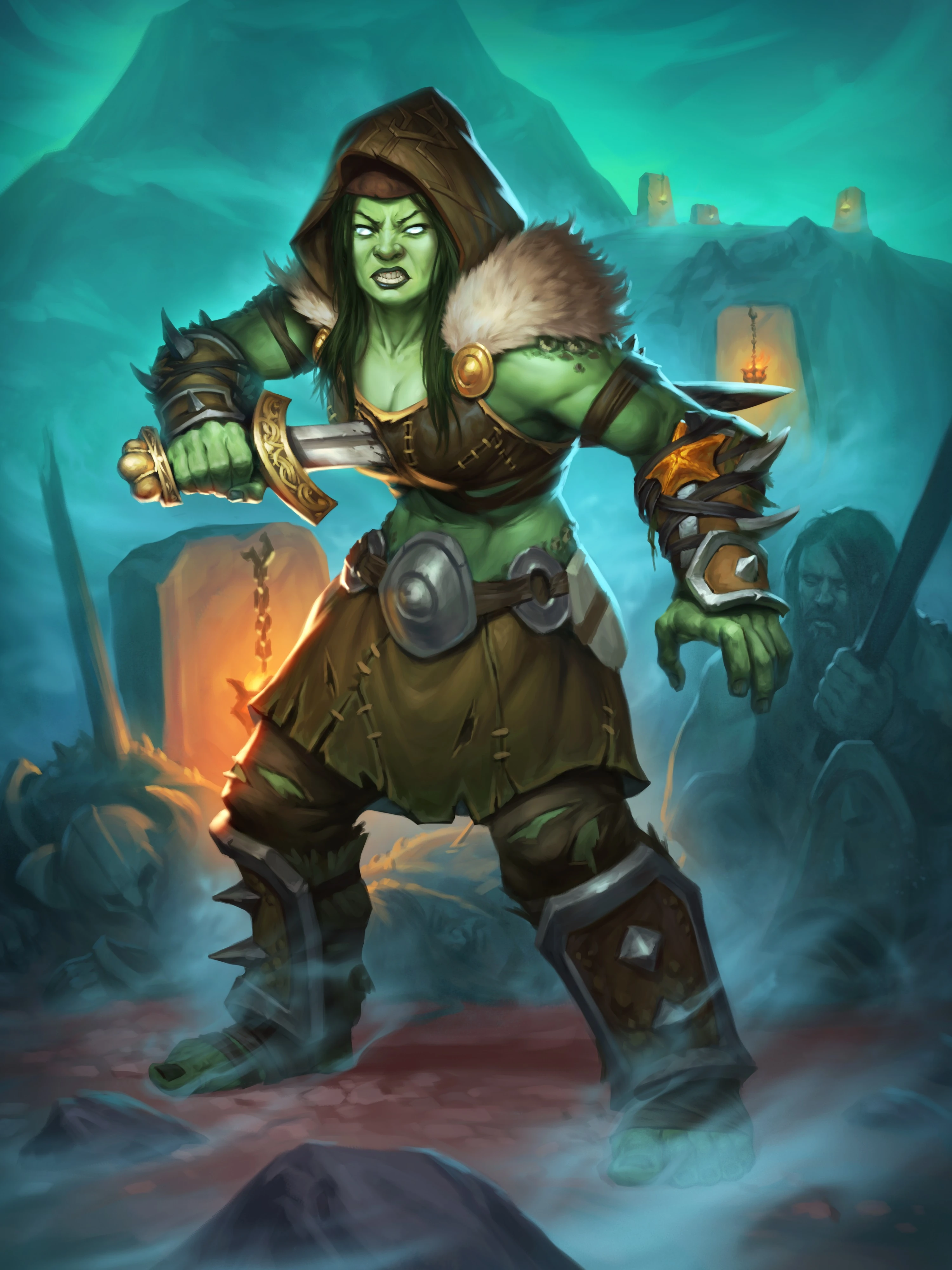 A female kvaldir in Hearthstone.