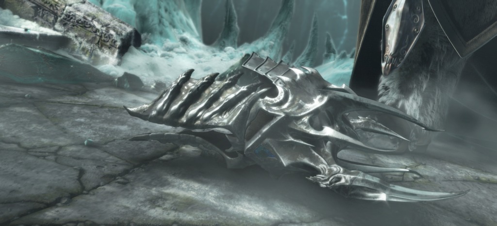 With a great cry of strength, Arthas brought the might of Frostmourne to bear against the Lich King's icy prison and with a haunting scream, the Frozen Throne exploded, and shards of the crystal scattered on the ground. With Ner'zhul's thorny helm at his feet, Arthas leaned forward, picked it up and then placed the unimaginably powerful artifact on his head.