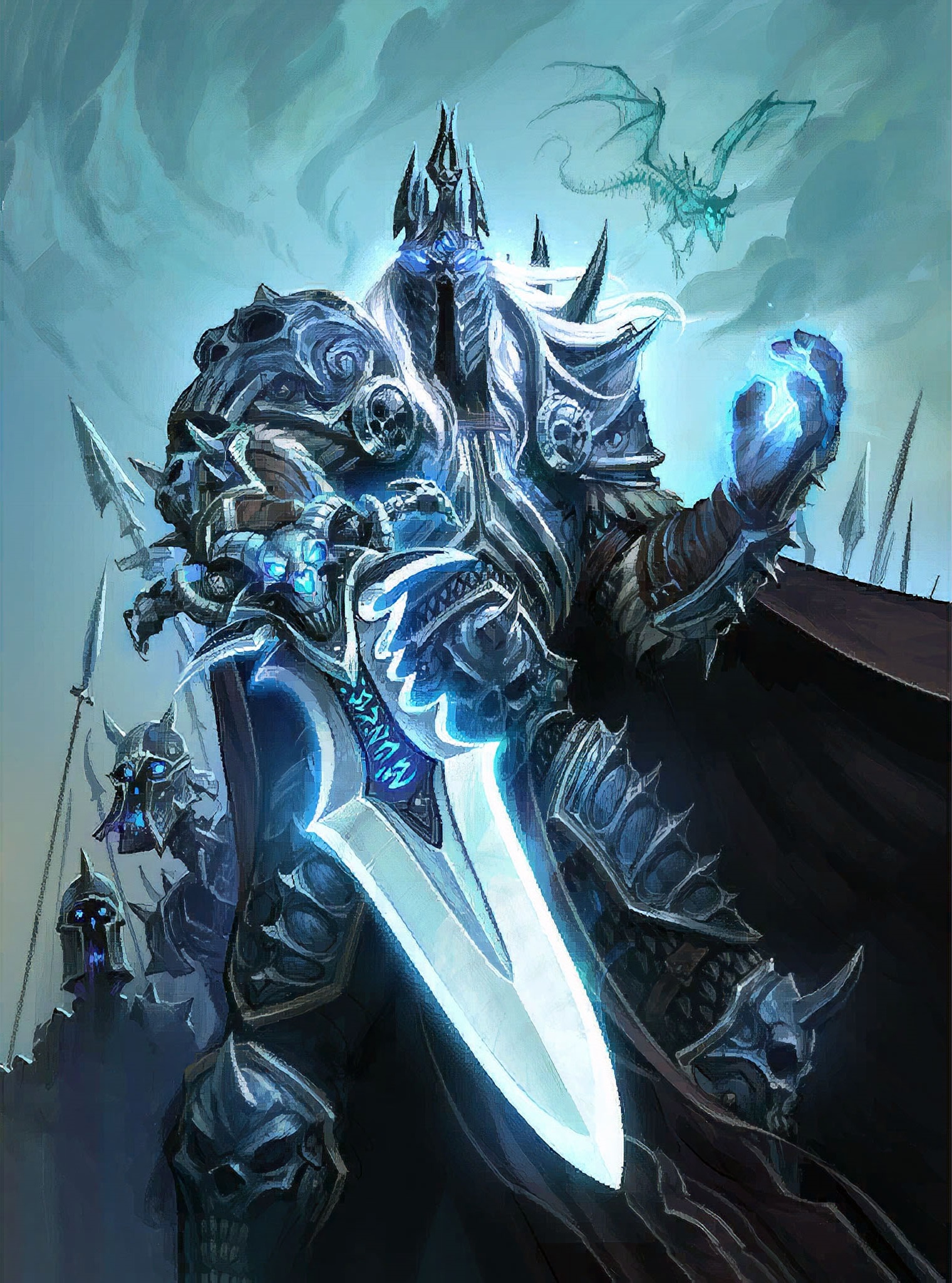 The Lich King with Sindragosa emerging from the ice behind him.