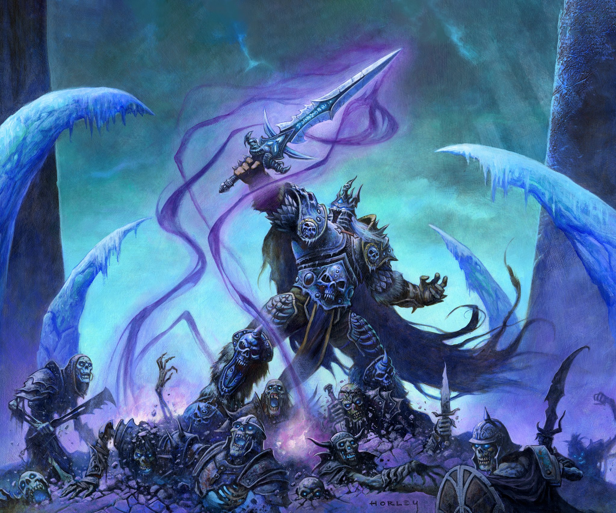 The awakened Lich King and his undead armies in Icecrown.
