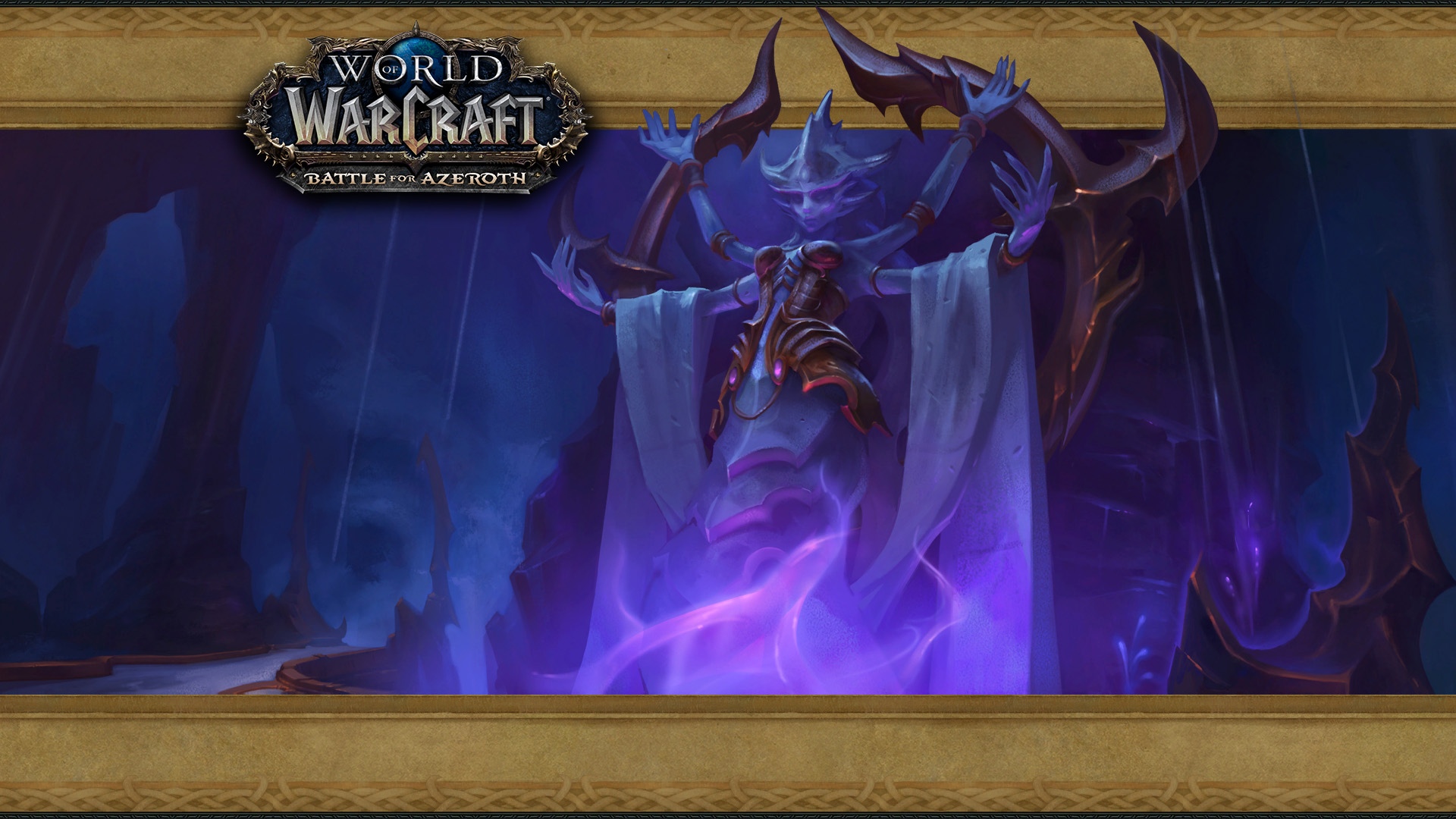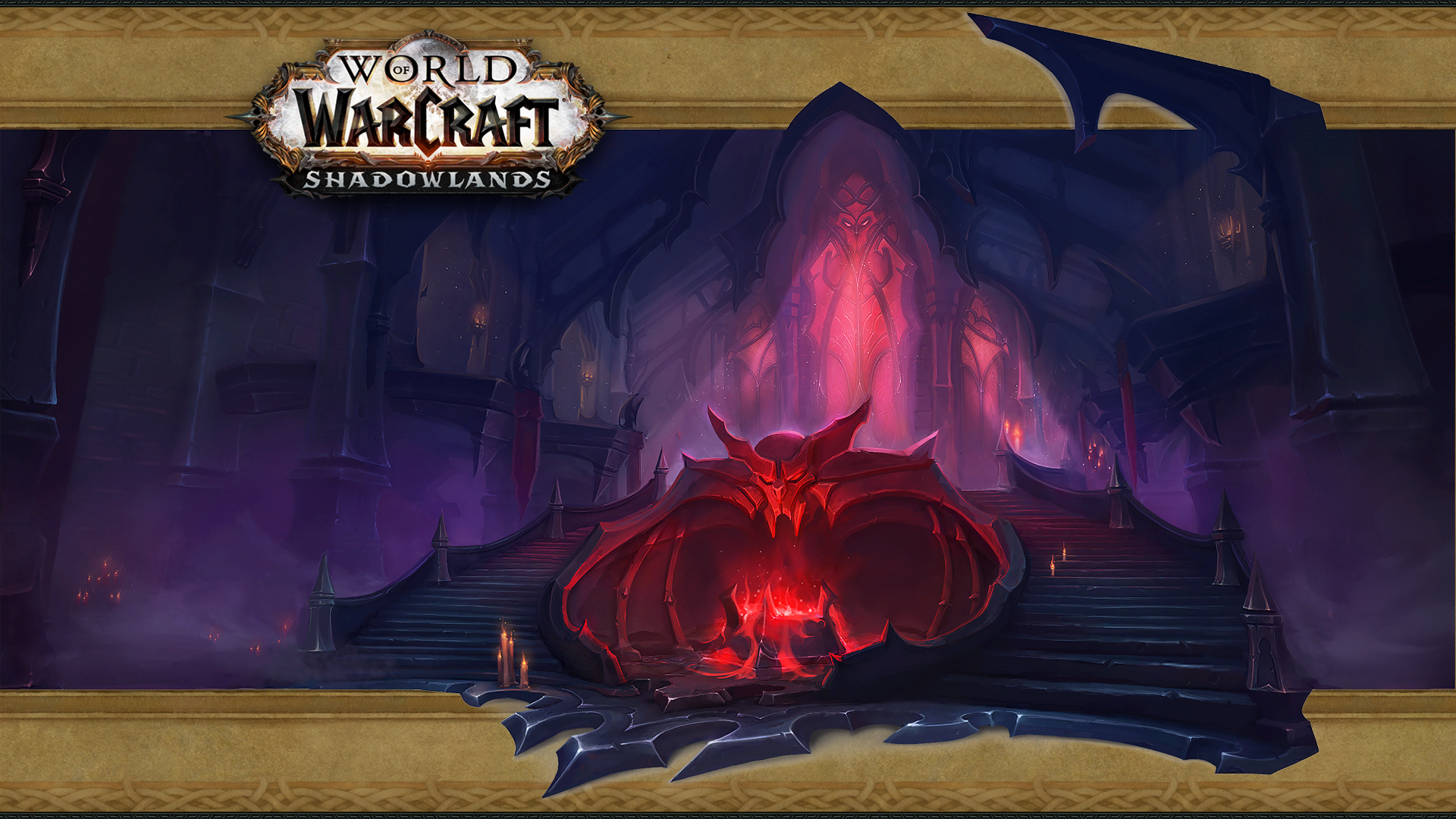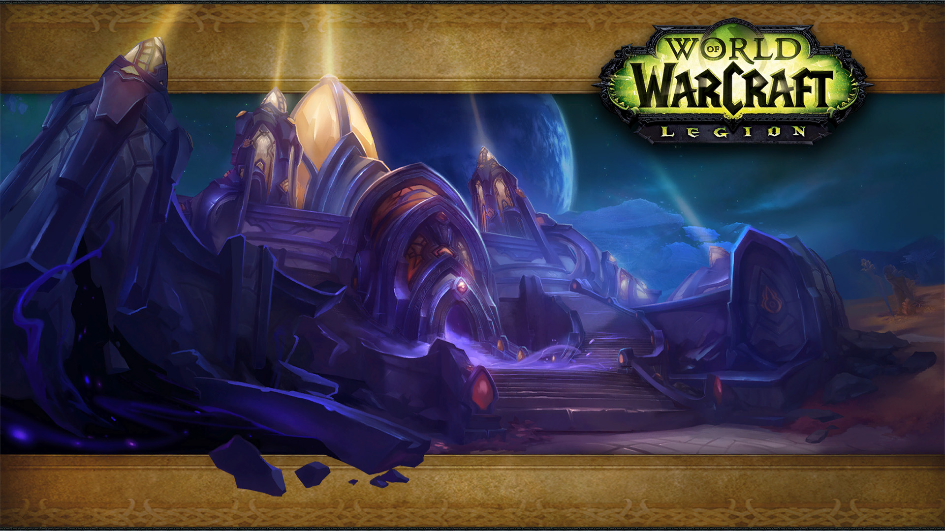 - Four login screens showcased things which spent most of the expansion damaged or destroyed: the two main towers of the Valley of Heroes in Stormwind City (Cata), the Twin Monoliths in the Vale of Eternal Blossoms (MoP), the alternate Dark Portal (WoD), and the Ruins of Lordaeron (BfA).