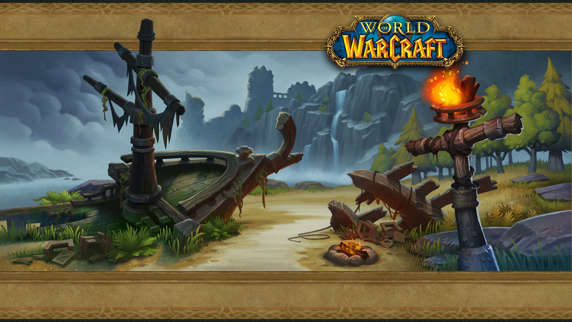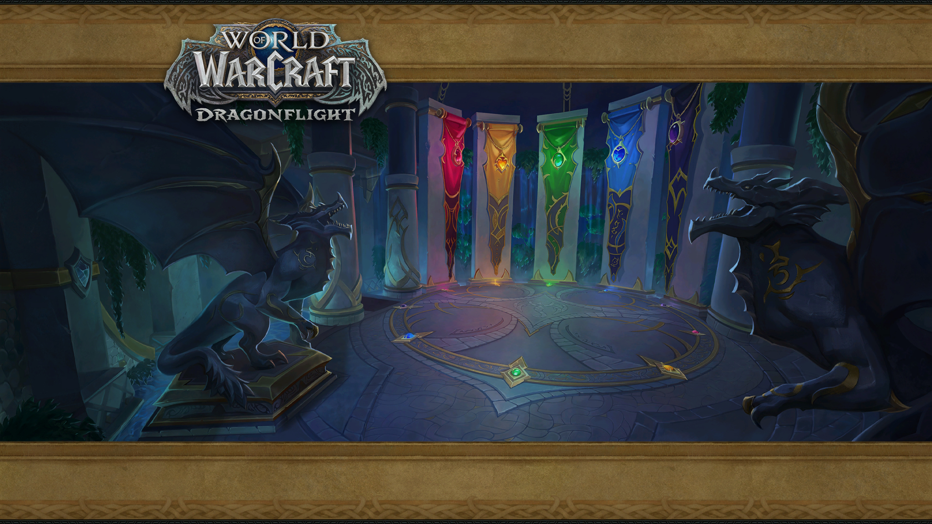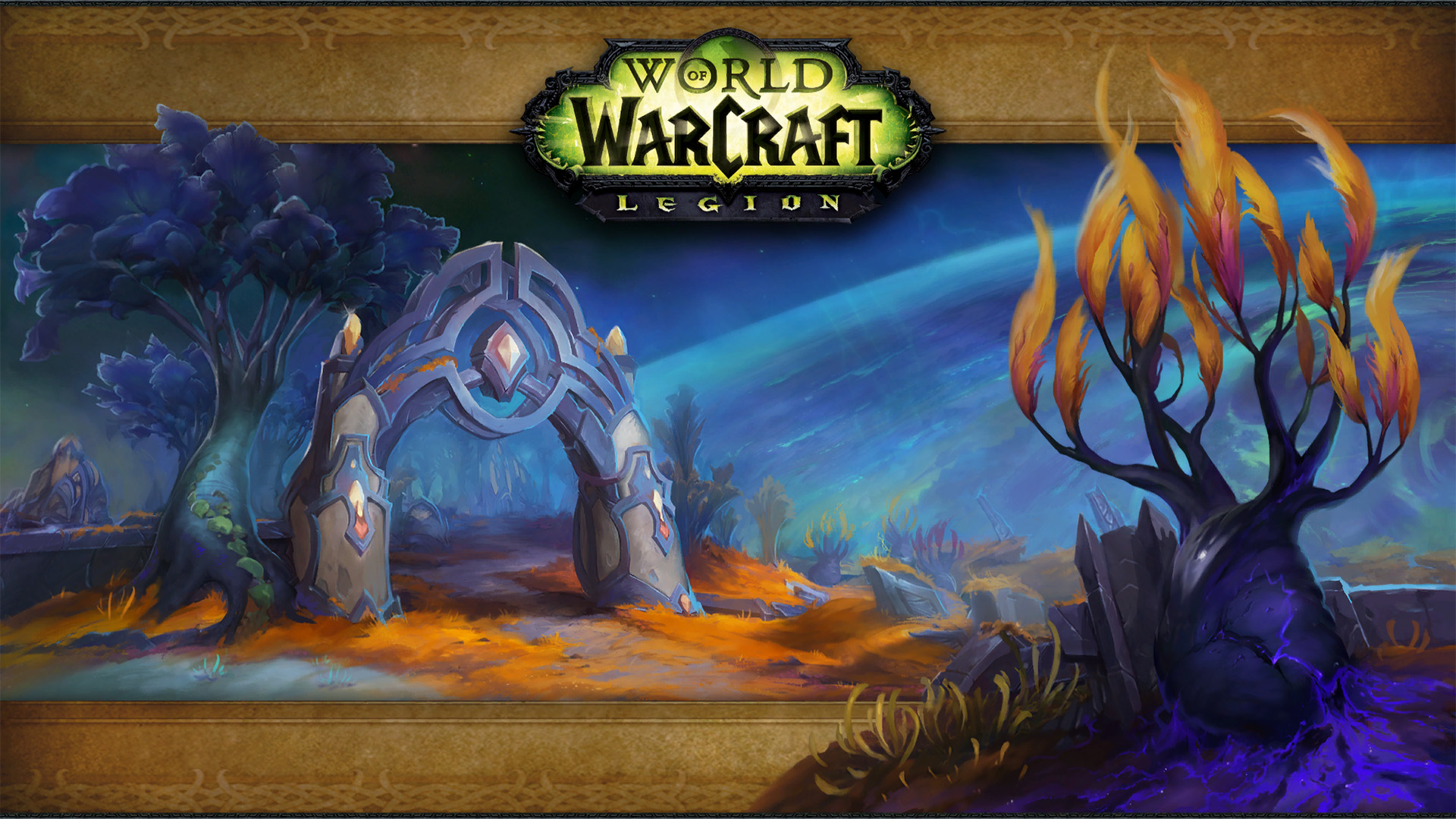 - Four login screens showcased things which spent most of the expansion damaged or destroyed: the two main towers of the Valley of Heroes in Stormwind City (Cata), the Twin Monoliths in the Vale of Eternal Blossoms (MoP), the alternate Dark Portal (WoD), and the Ruins of Lordaeron (BfA).