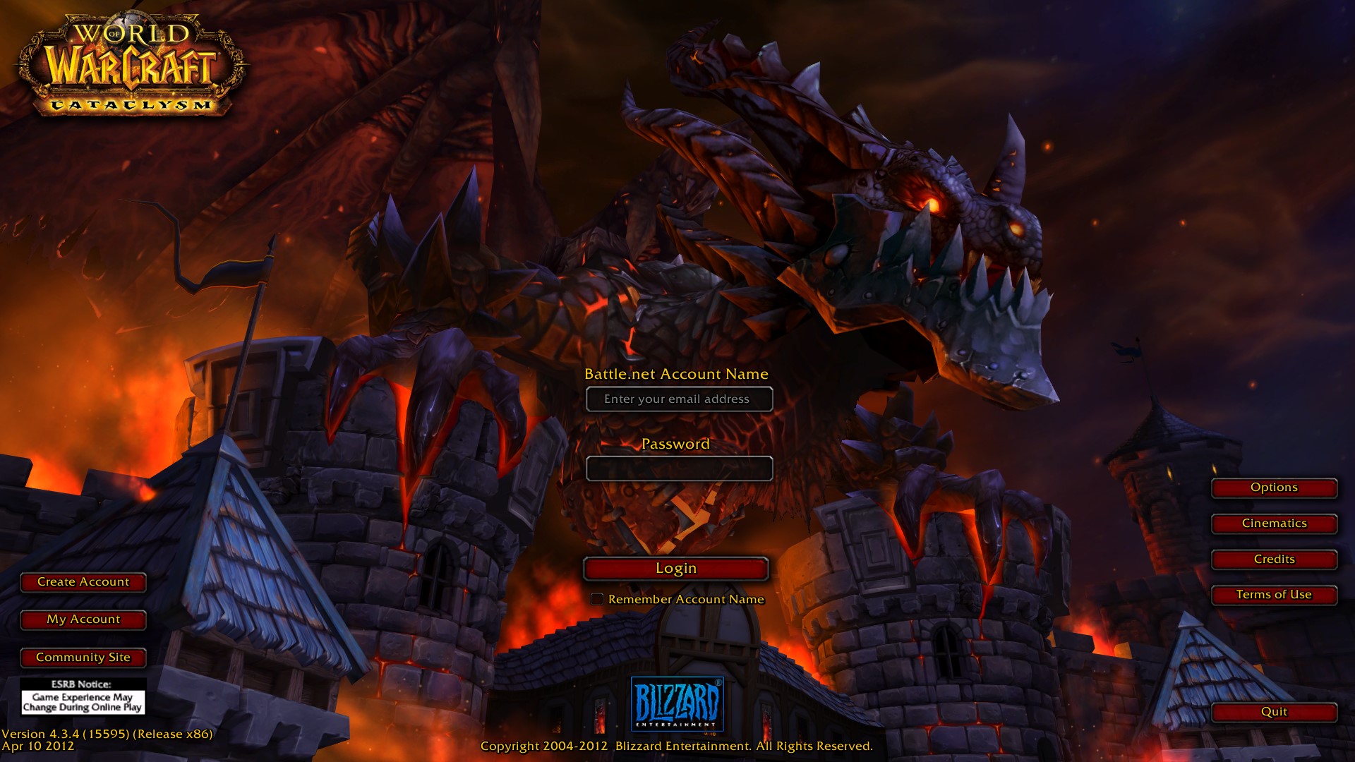 - ^ Login Screen Cataclysm still-image.