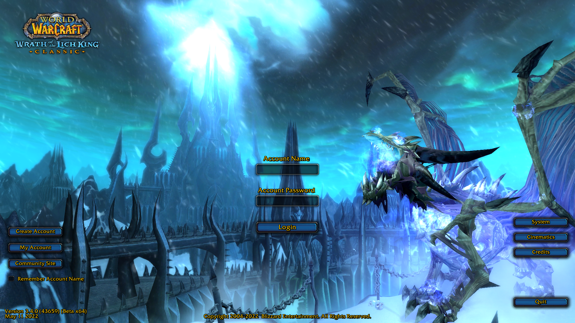 - The Wrath of the Lich King screen opened with the frost wyrm, Sindragosa flying into the frame, flapping her wings, landing with a thud, and emitting an infamously powerful roar, all repeating at a set interval. That often irritated players who were trying to log in quietly, to the point "roaring dragon screen" complaints were rumored to have influenced the randomized and much quieter roar of a different dragon in the next expansion's loading screen.