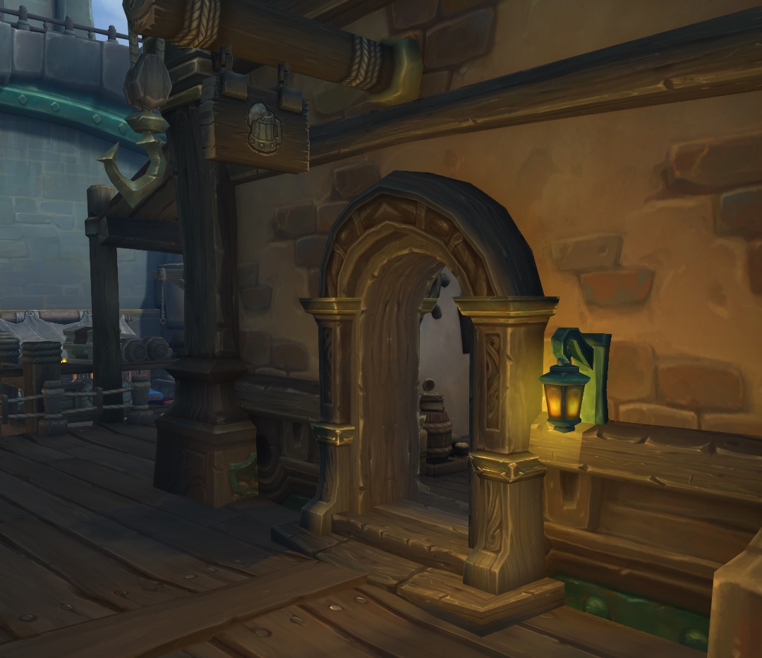 The Loose Cannon is located in Hook Point in Boralus. The place is run by Crimper Mirjam. Upstairs, a local worker can at times be found hitting on a Shady Individual. Keeping it up, the Menacing Bruiser will give the worker a little... reminder.