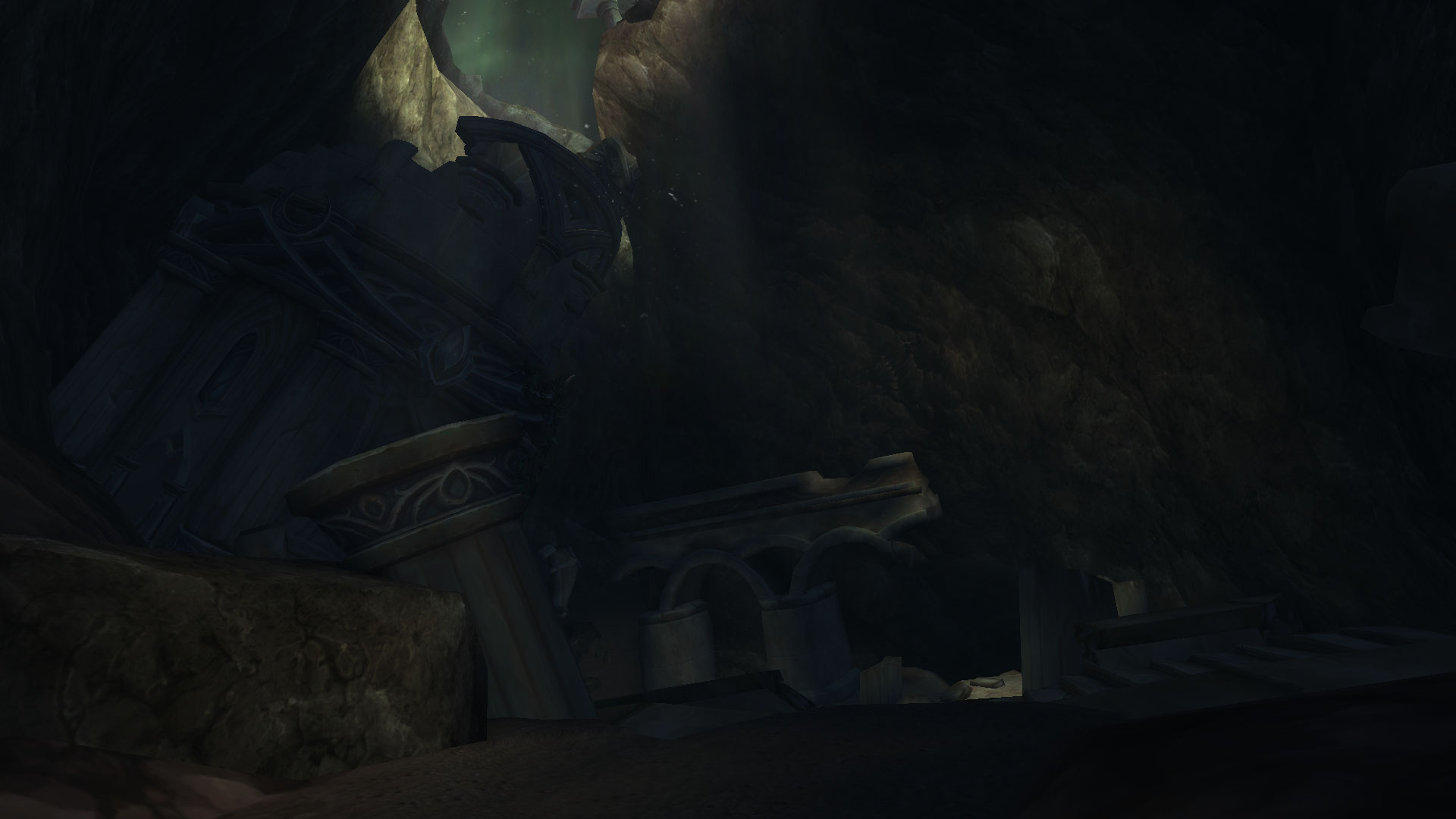 The Lost Temple is cave full of a collapsed night elf temple near the Tomb of Sargeras. There is no land path to this area, unlike the cliffs behind it, and it requires flying, swimming, or falling to get to.