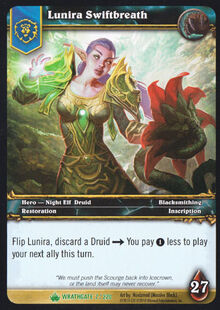 | Rules | Flip Lunira, discard a Druid → You pay 1 less to play your next ally this turn. |