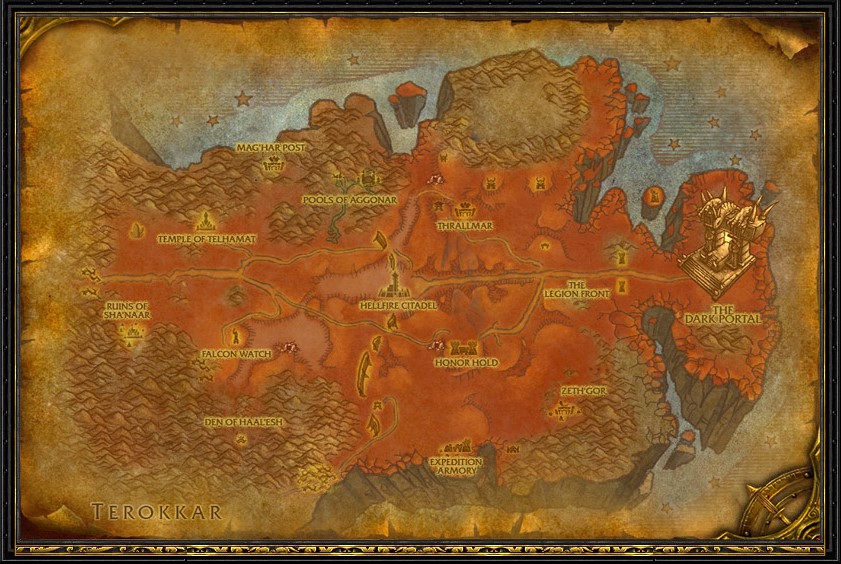 Key to a memorable raid dungeon is integrating it into the world - making the player feel like they are interacting with important characters and events in the Warcraft universe, and creating an evocative setting which also fits into the existing landscape of Azeroth and Outland. Magtheridon's Lair was designed from an early stage with these guidelines in mind.