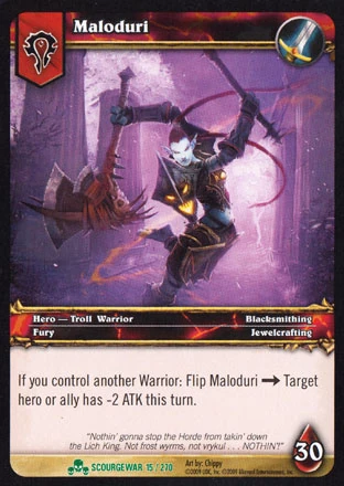 | Rules | If you control another Warrior: Flip Maloduri → Target hero or ally has -2 ATK this turn. |