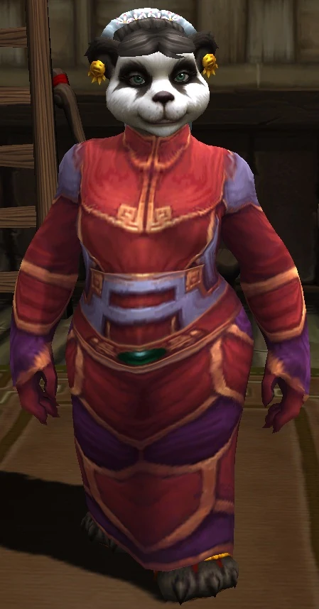 Mama Min is a pandaren living on the outskirts of Halfhill in the Valley of the Four Winds. Her family herds yaks. She is fond of talking, especially about her son, Dion.