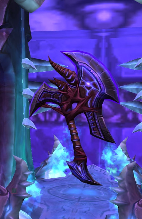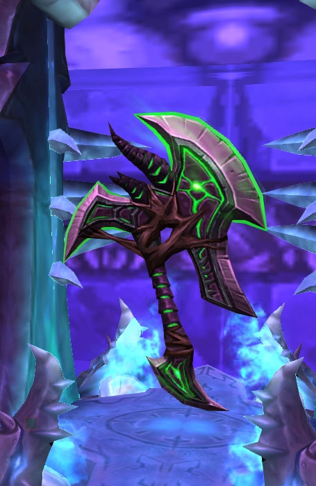 - An ancient Legion axe forged from a metal that drains its victims' vital energies. The soul of its original creator is trapped within and cursed with unending hunger. For more than a thousand years, an old and cunning mo'arg has used the axe to butcher uprisings and consume the life force of the Legion's foes. Over its long and infamous history, the weapon has made its demonic bearer extraordinarily powerful.[1]