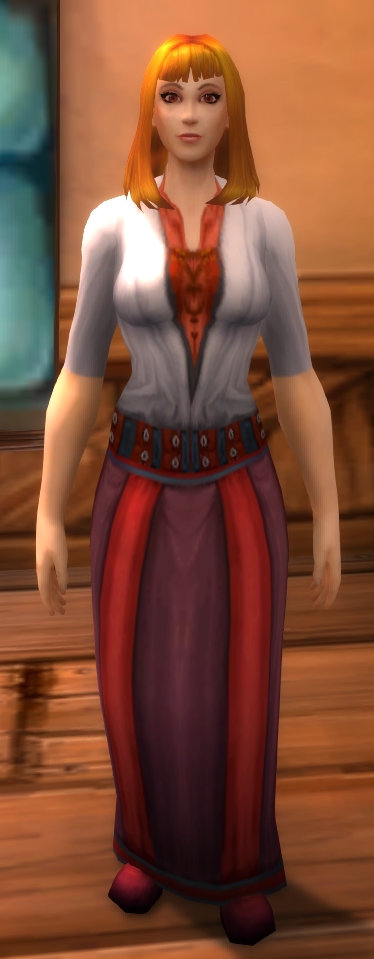 Michelle Belle is a human located at the Lion's Pride Inn in Goldshire, in Elwynn Forest. She teaches tailors how to craft bandages.