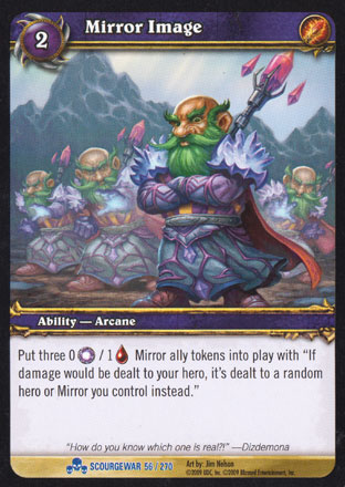 | Rules | Put three 0 Arcane Damage / 1 Health Mirror ally tokens into play with "If damage would be dealt to your hero, it's dealt to a random hero or Mirror you control instead." |