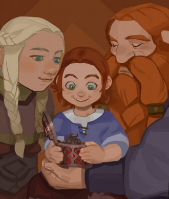 Moira Bronzebead was born to King Magni Bronzebeard, King of Ironforge. While Magni did love his daughter, he had always wanted a son to rule the throne after him, and was disappointed that Moira was not the male heir he had hoped for.[5] Nevertheless, Magni did love and raise Moira. But after her mother Eimear was killed by the Frostmane trolls, Magni - acting on Eimear's last wish to always be there for Moira - began training Moira in the ways of the warrior to prepare her for anything. This formed a rift between the two of them, as he forced her to be something she was not.[6]