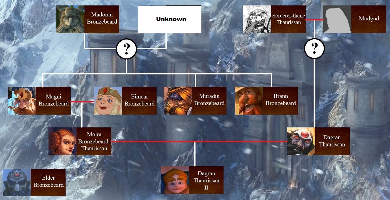 | Relative(s) | Elder Bronzebeard, Aegrim, Madoran (ancestors), Magni (father), Eimear (mother), Muradin, Brann (uncles), Dagran Thaurissan (husband), Dagran Thaurissan II (son) |