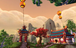 Morning Breeze Village is a pandaren village found west of the Temple of Five Dawns on the Wandering Isle. Recently the hozen stole paint and brushes from the village and now defile the scrolls of wisdom in the ridge to the south. During the attacks, they have also stolen food and firecrackers.