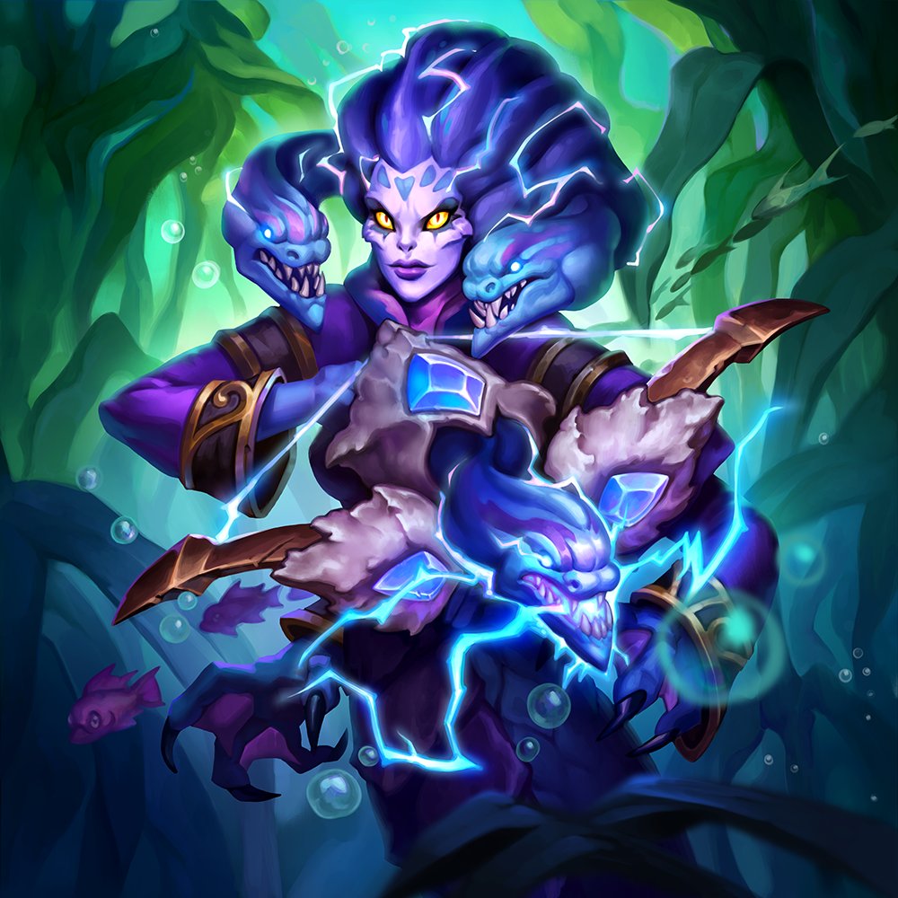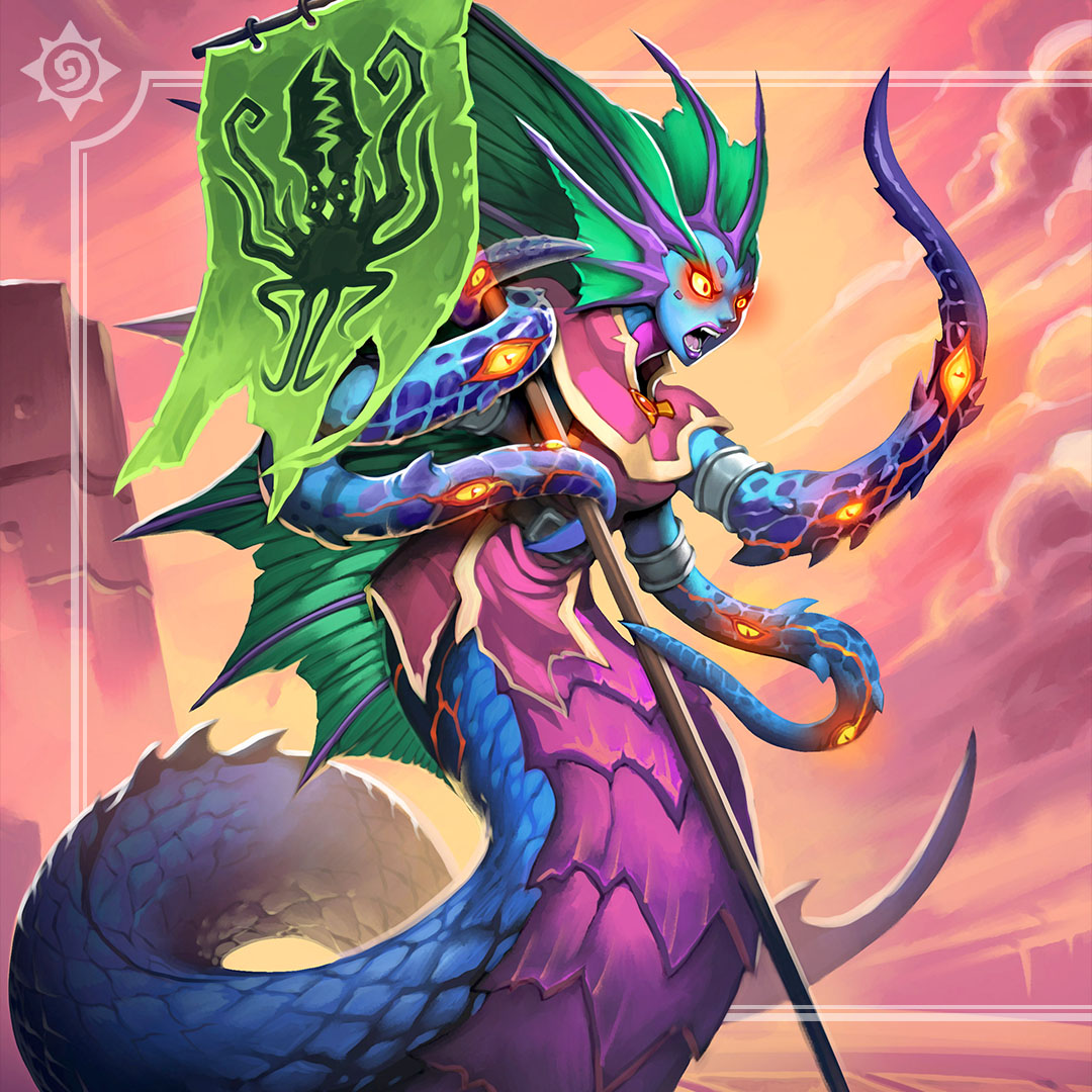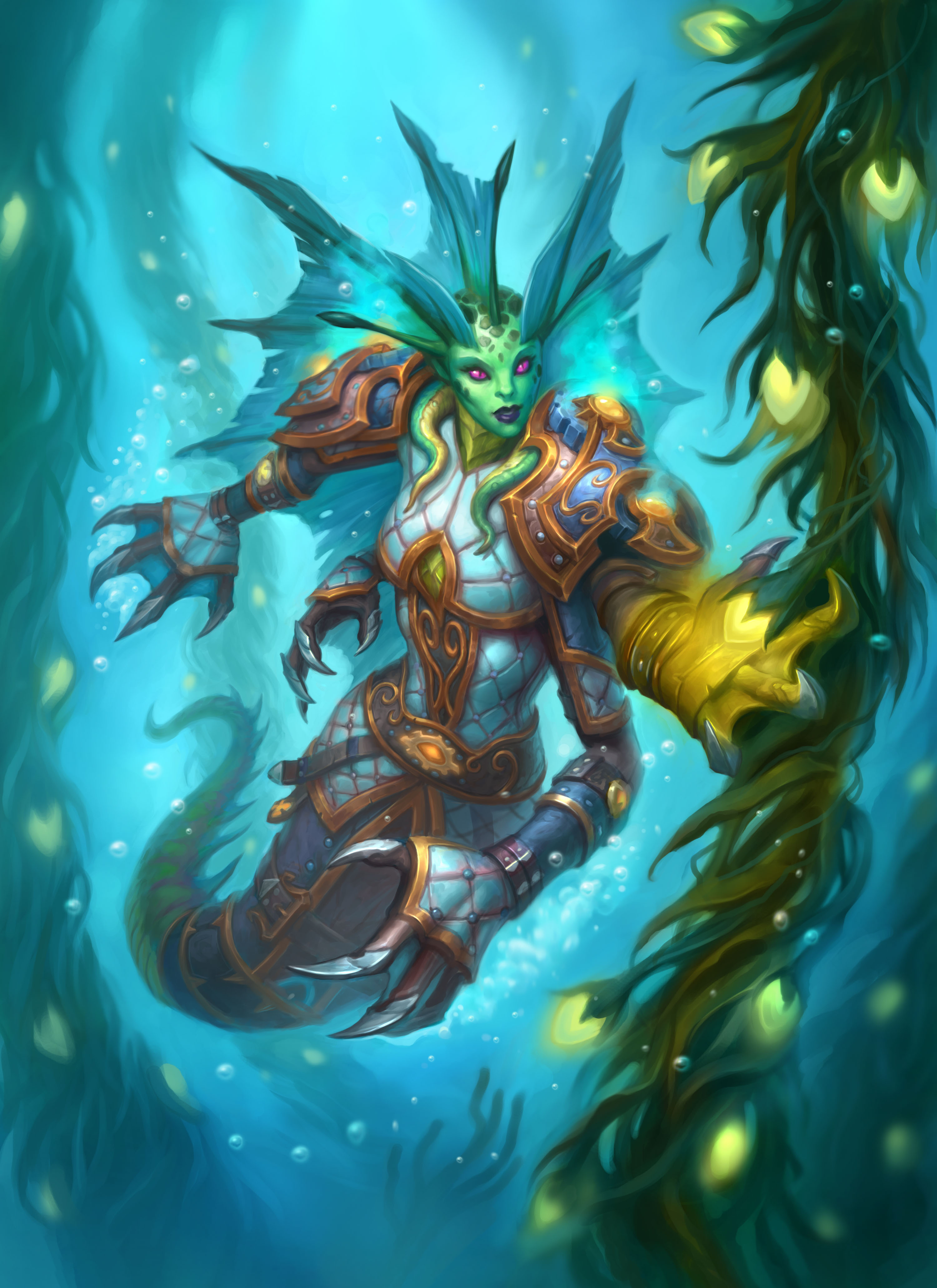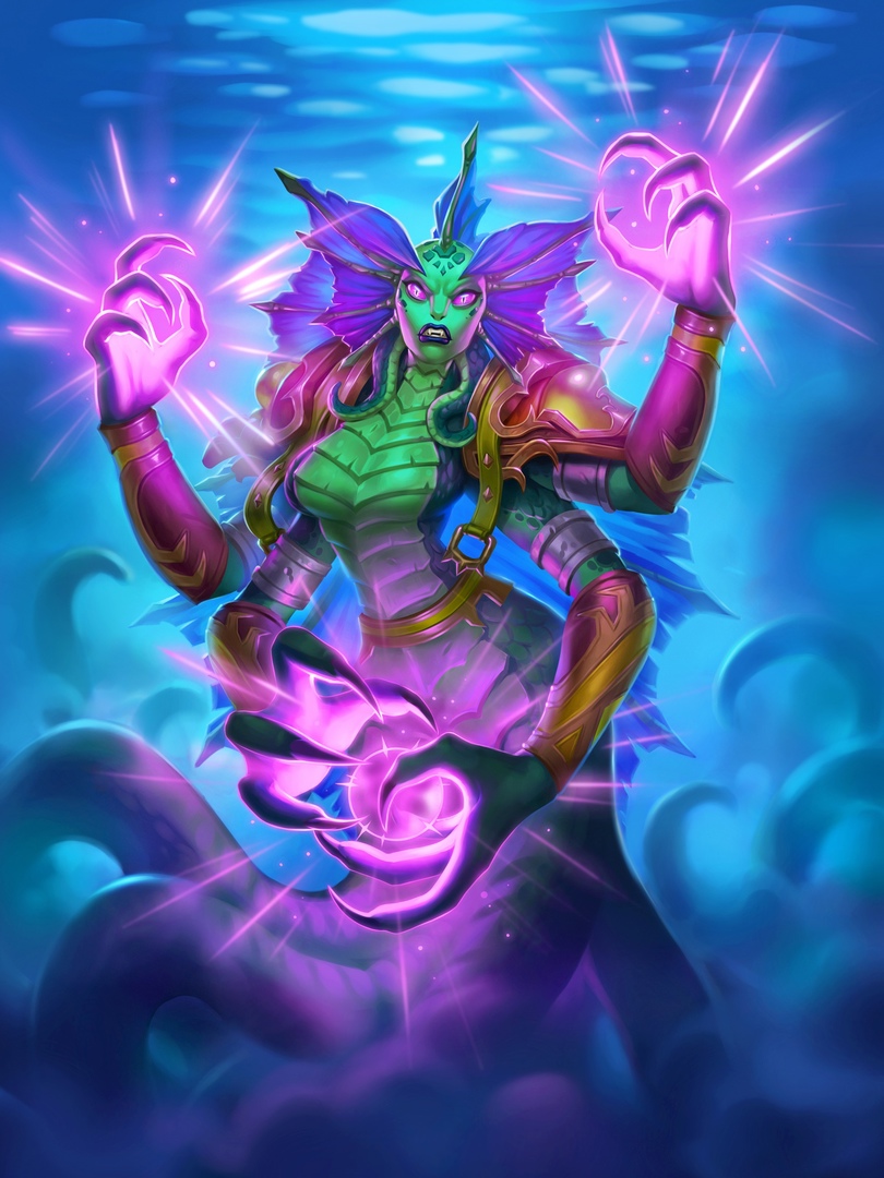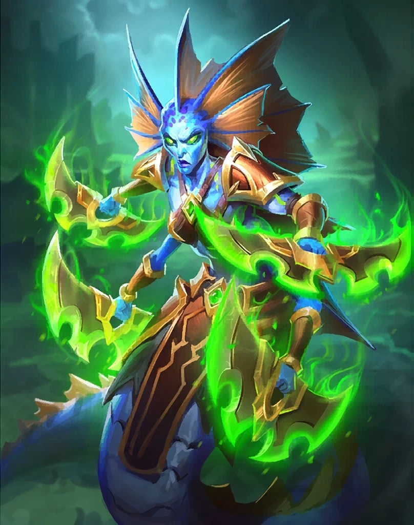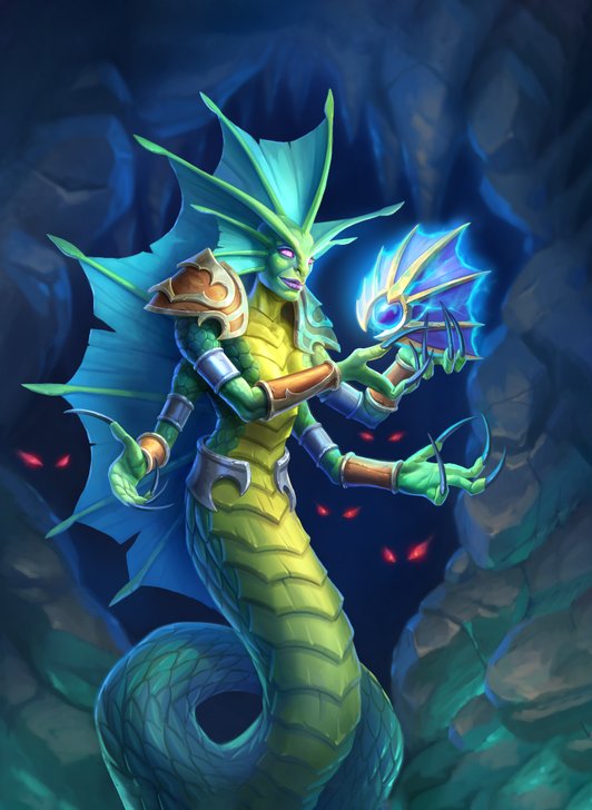 A female naga in Hearthstone.