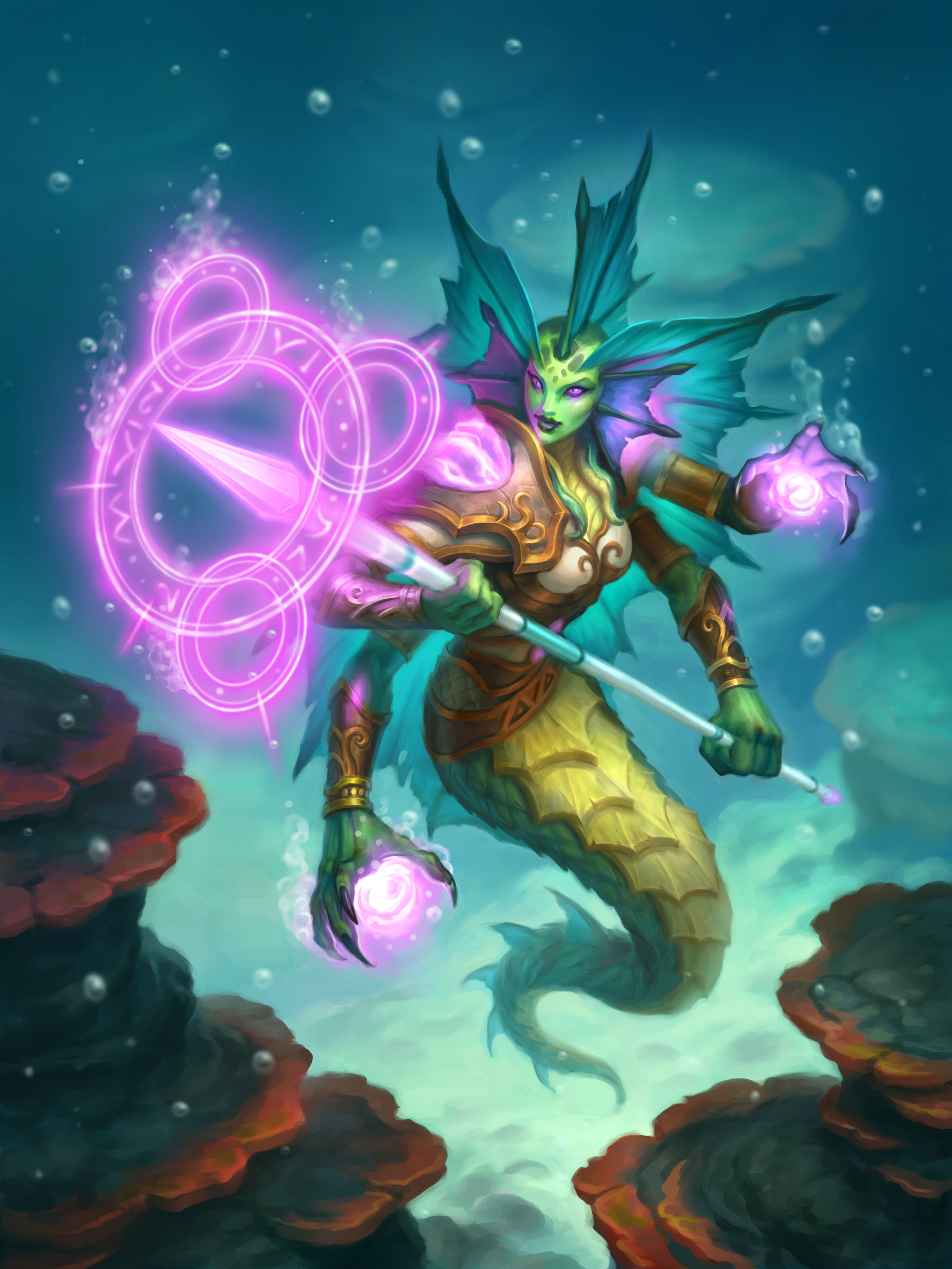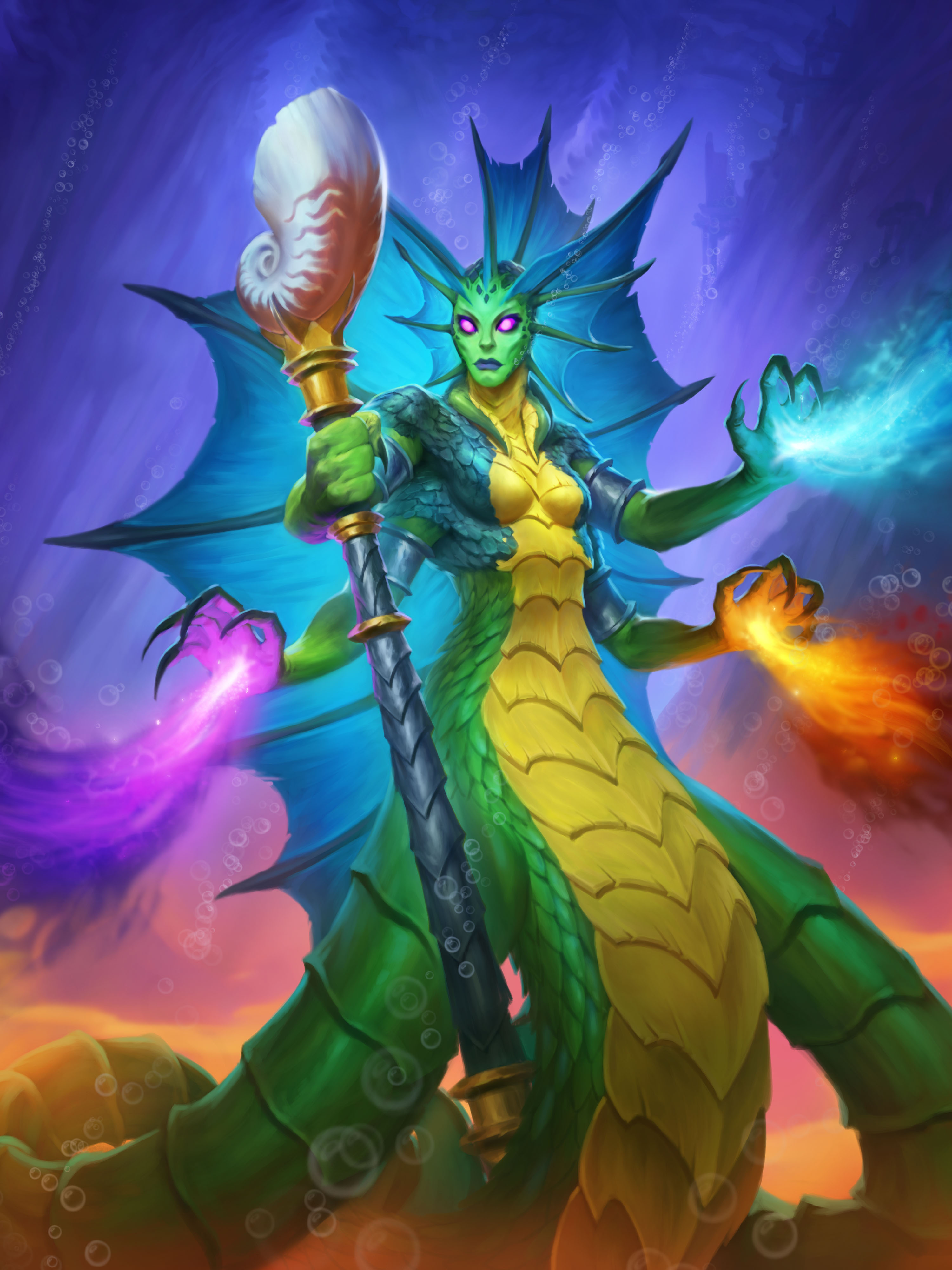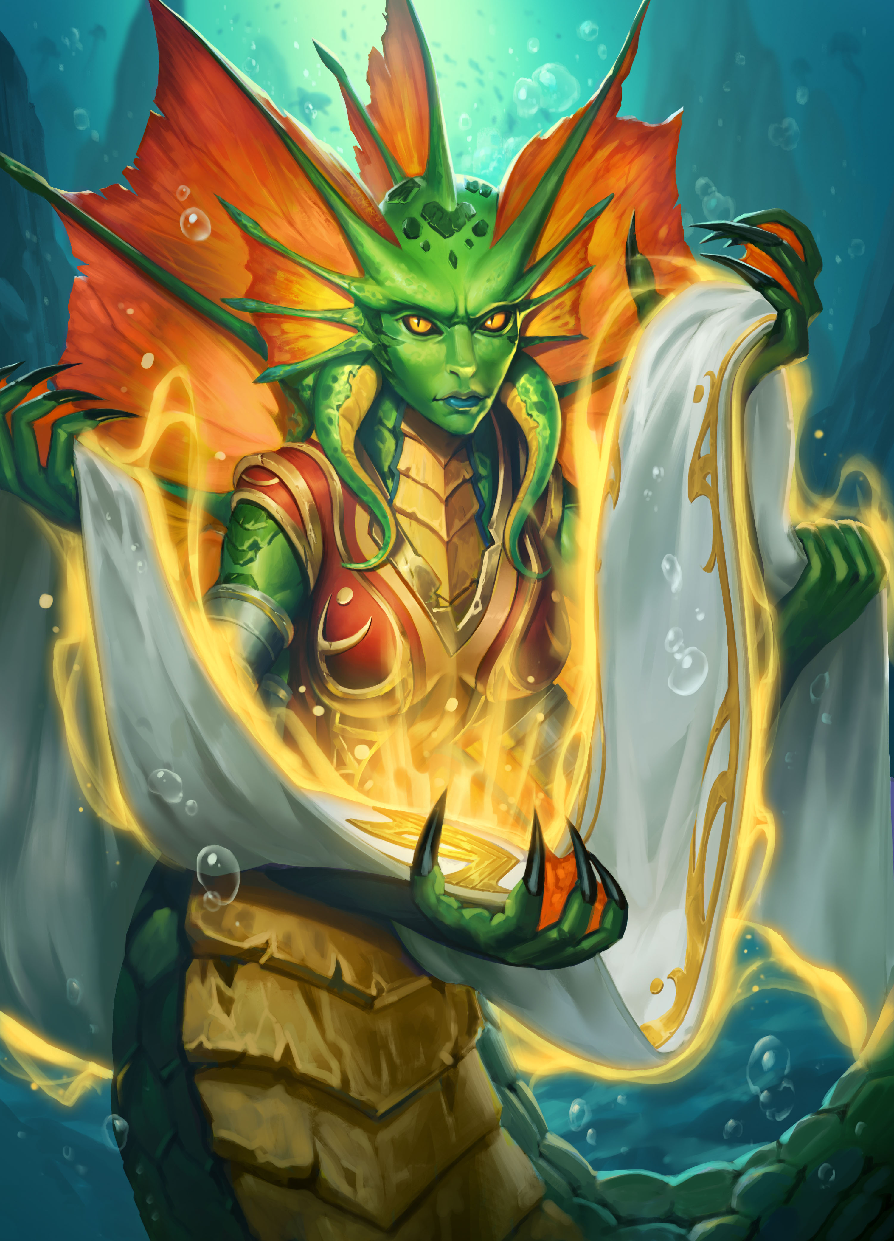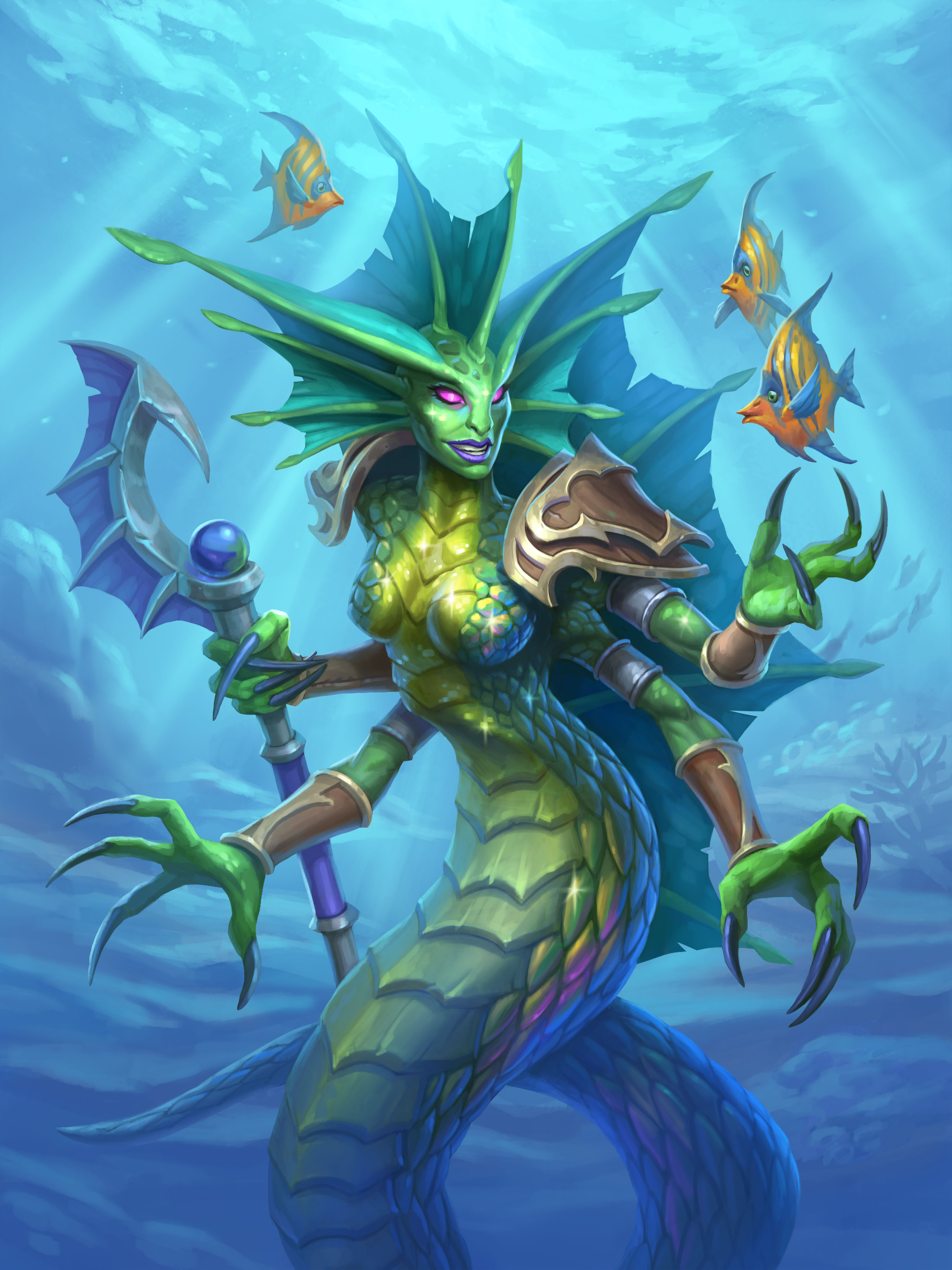 A female naga in Hearthstone.