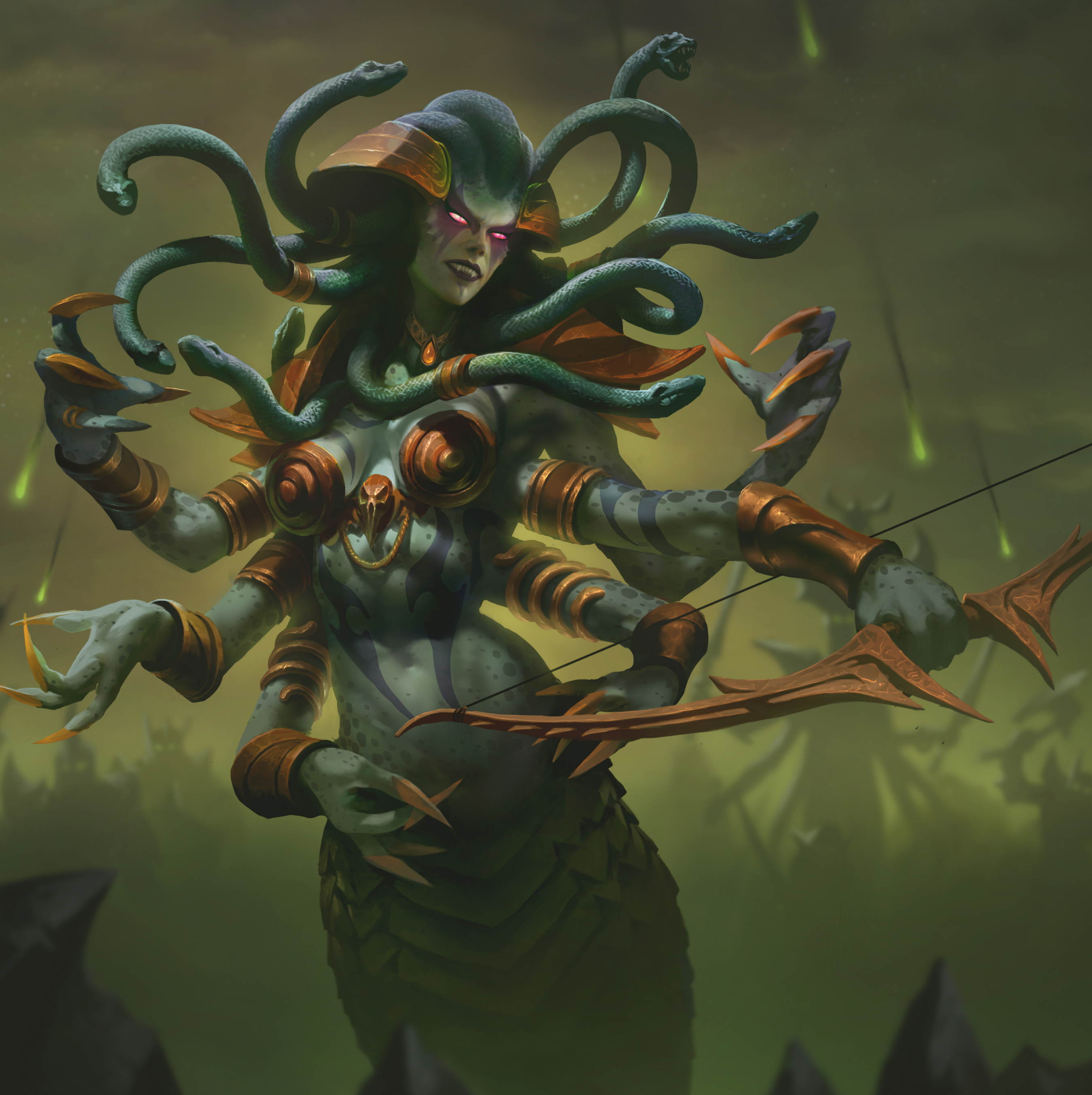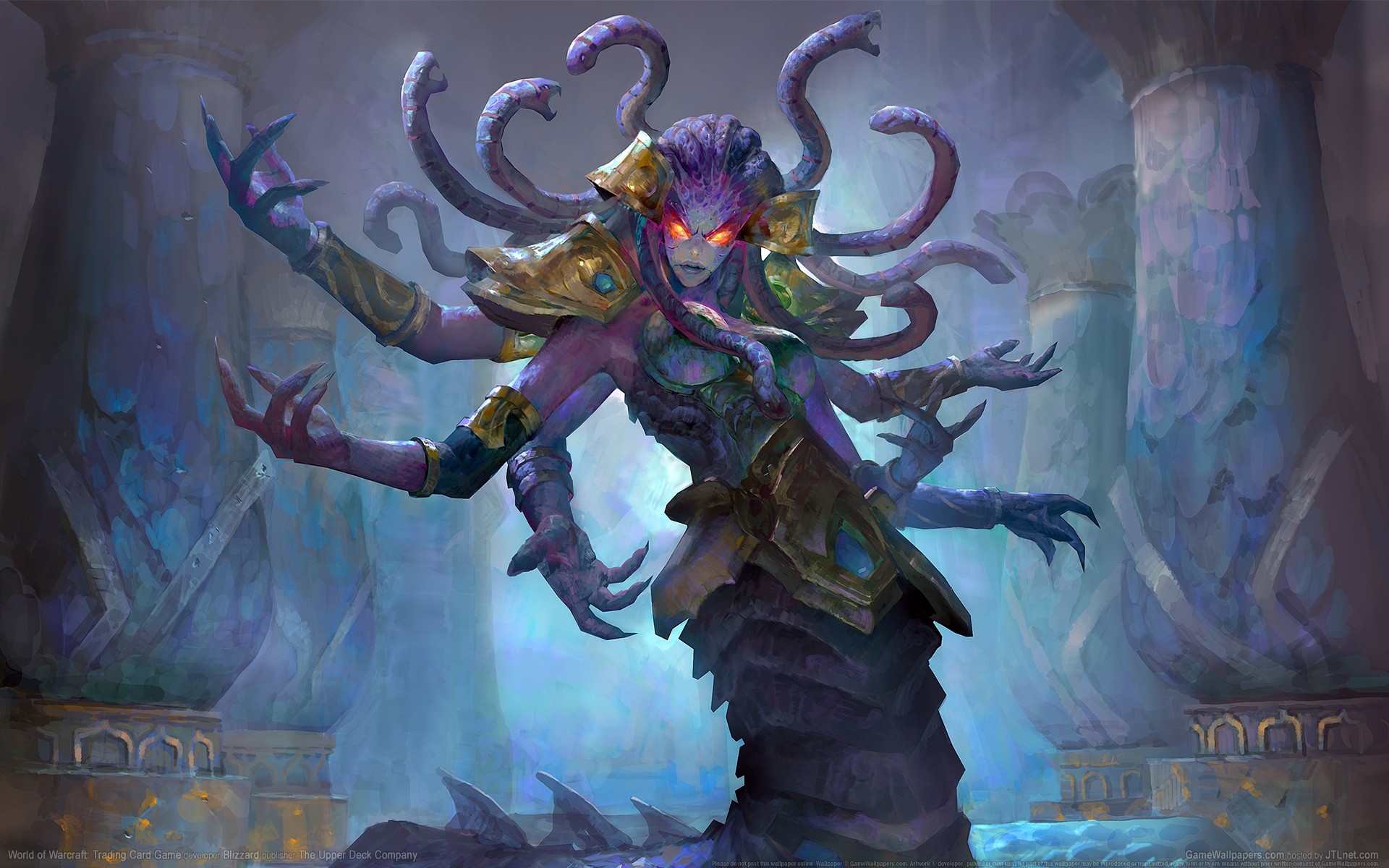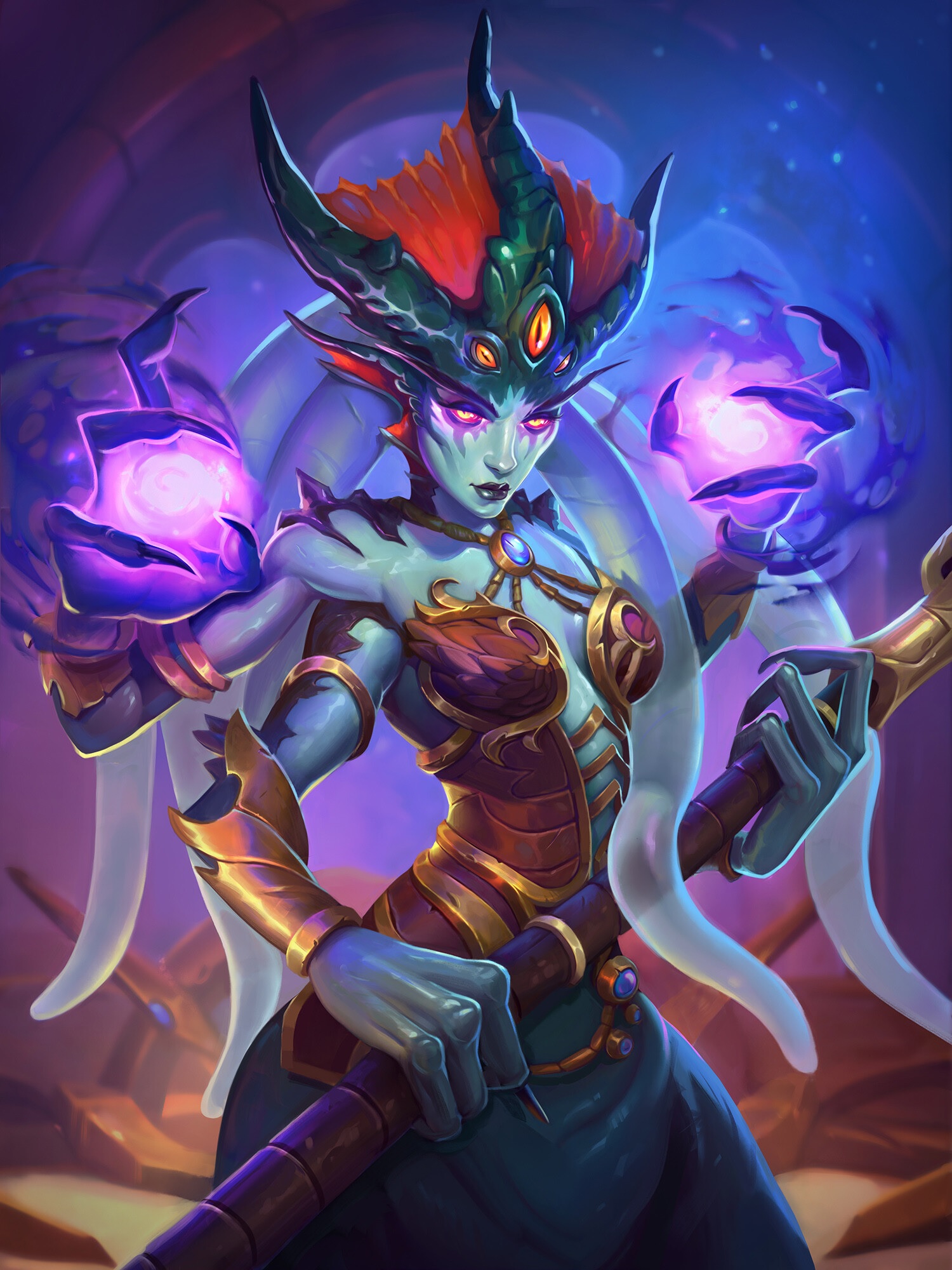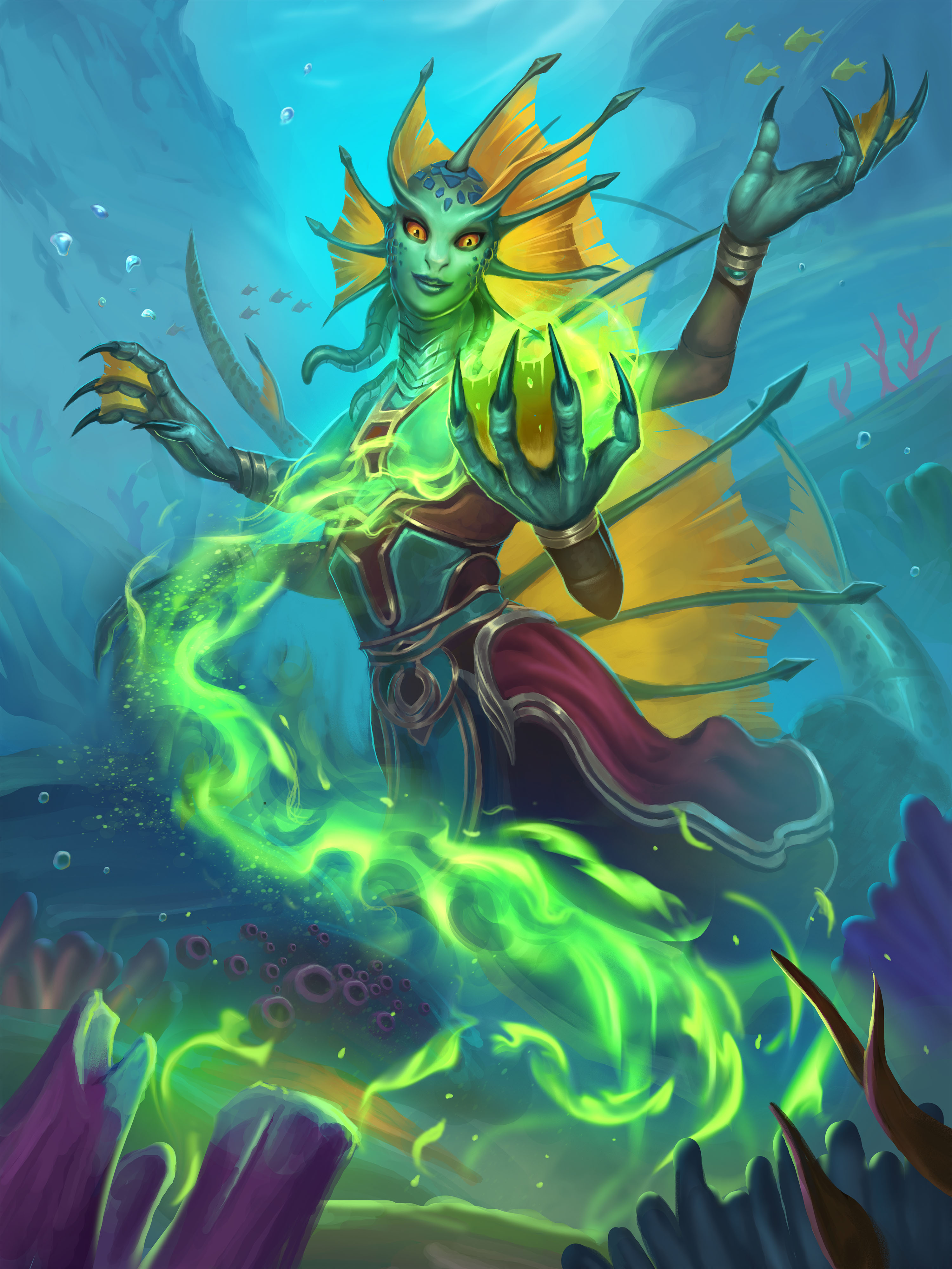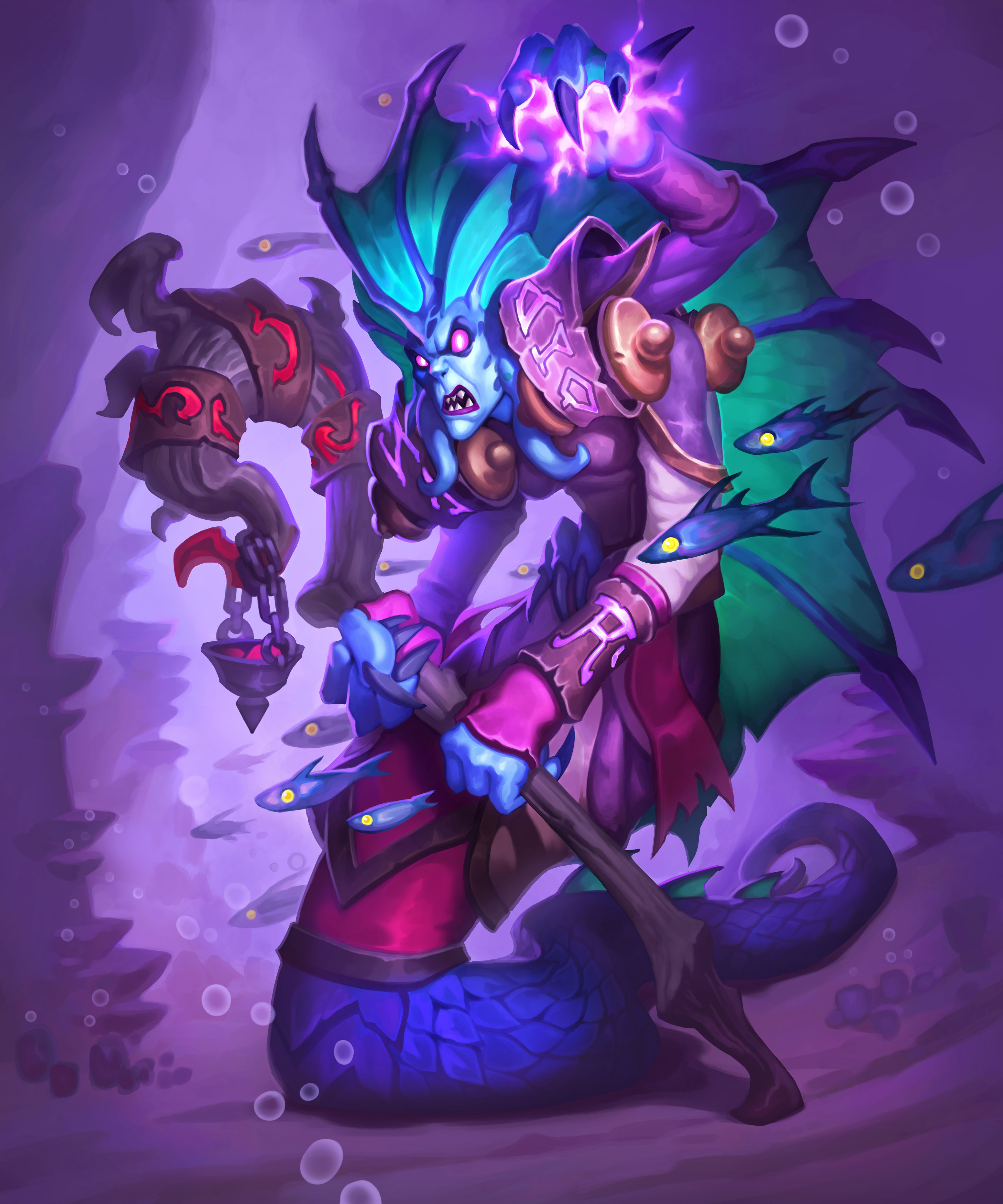 A female naga in Hearthstone.