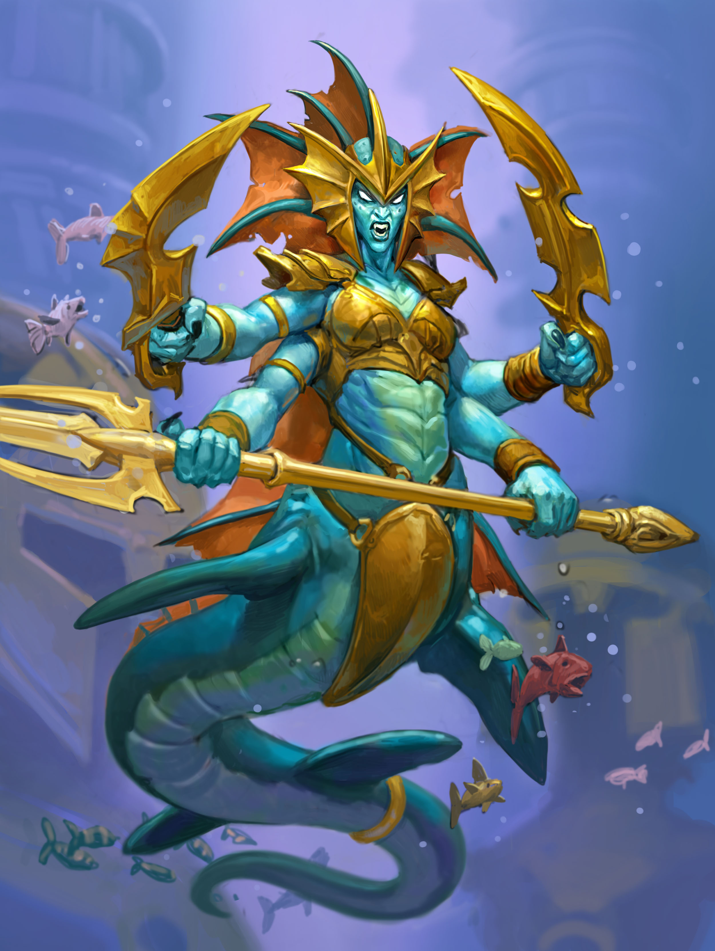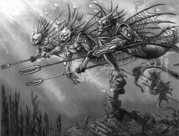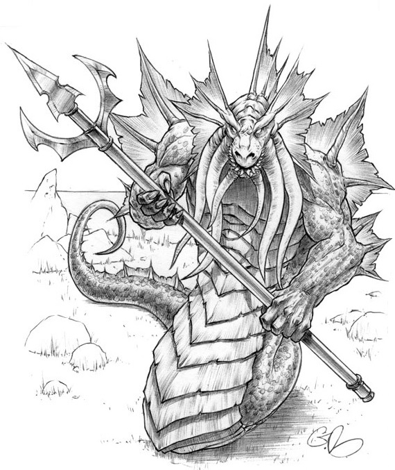 Naga wield scimitars and tridents.[53]