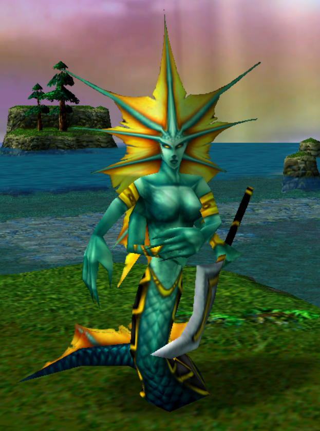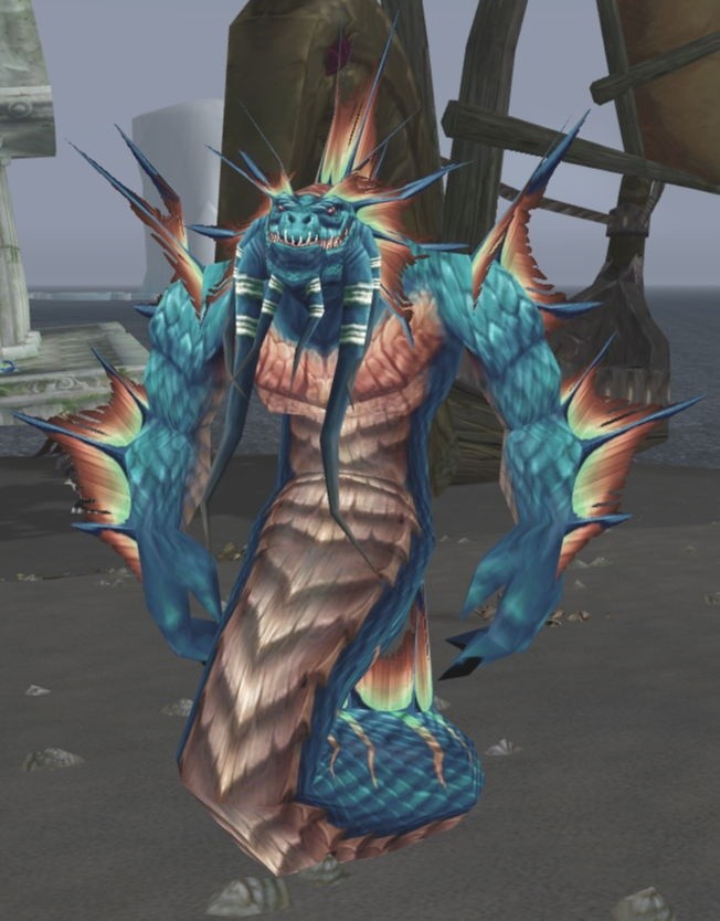 The naga resurfaced in the time around the Third War. One of the first sightings of naga took place when Warchief Thrall rescued the Darkspear trolls from a tribe of murlocs on a stormswept isle in the Great Sea. The murlocs worshiped a creature they called sea witch - Zar'jira.