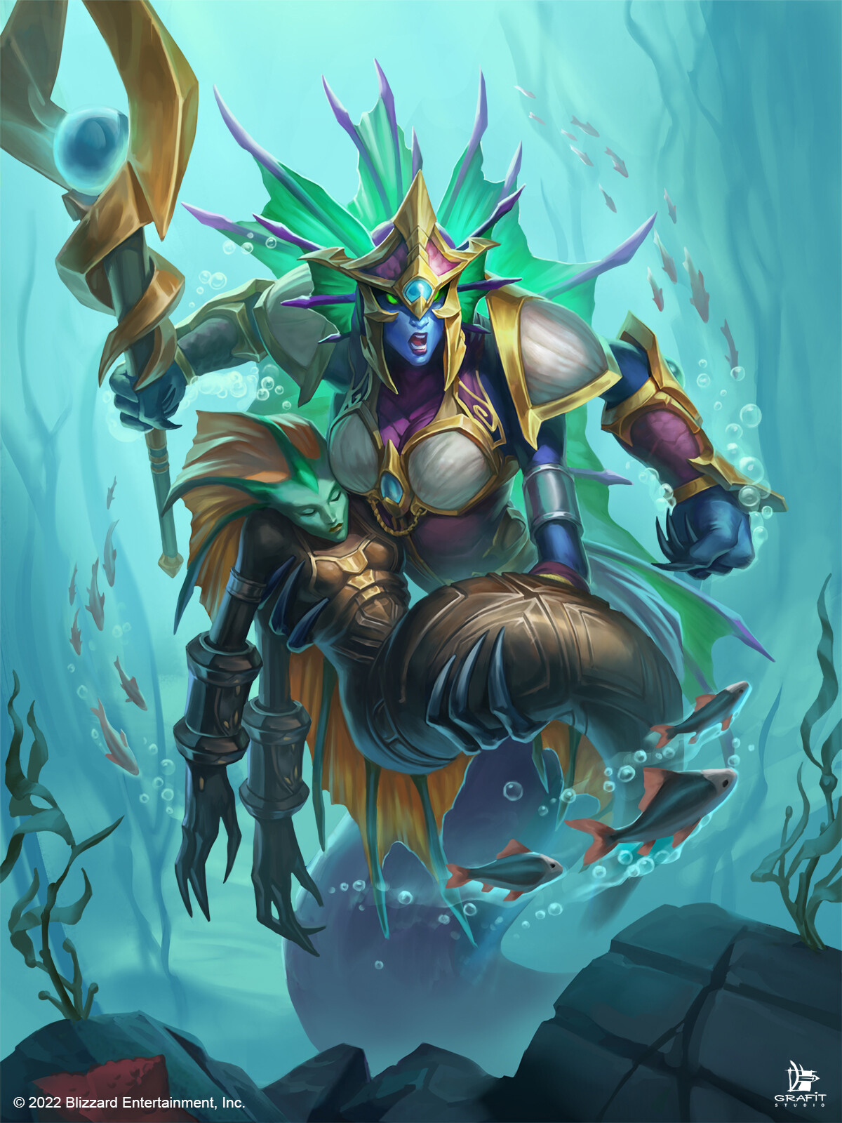 Queen Azshara and her naga in Nazjatar.