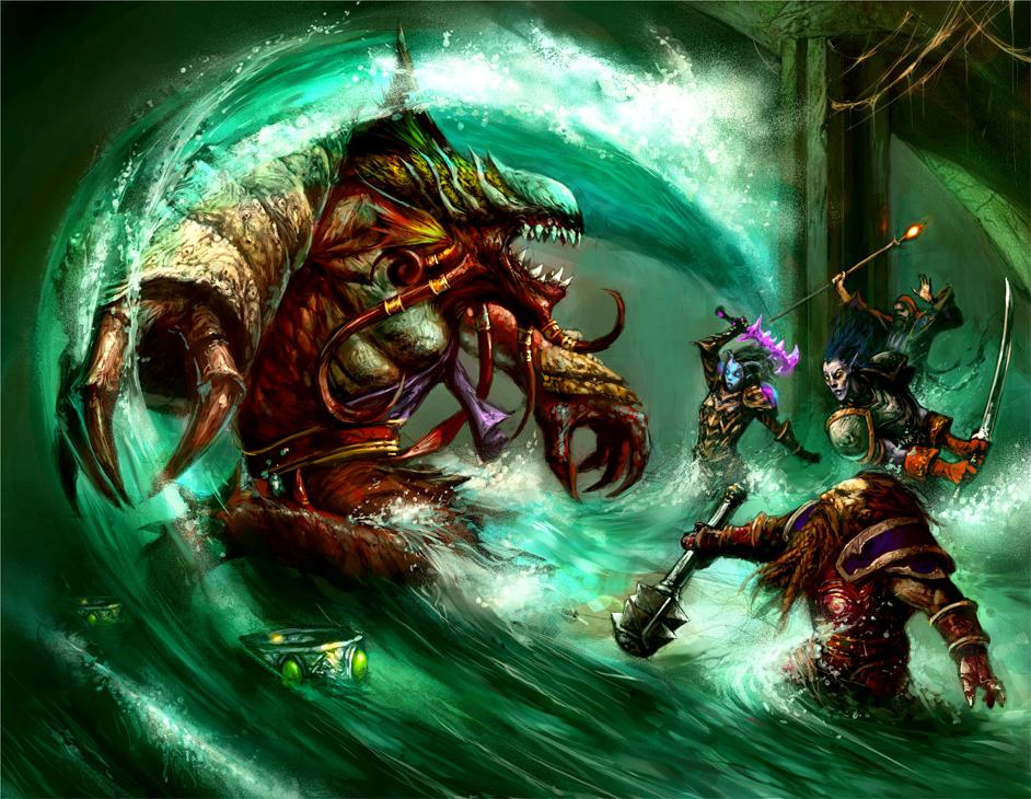 In general, naga are scaled humanoids with the lower bodies of large serpents. Naga can breathe water or air, and some naga have recently emerged from the ocean's depths. Yet most naga have continued to dwell in the ocean's depths, beneath the site of the original Well of Eternity.[5]