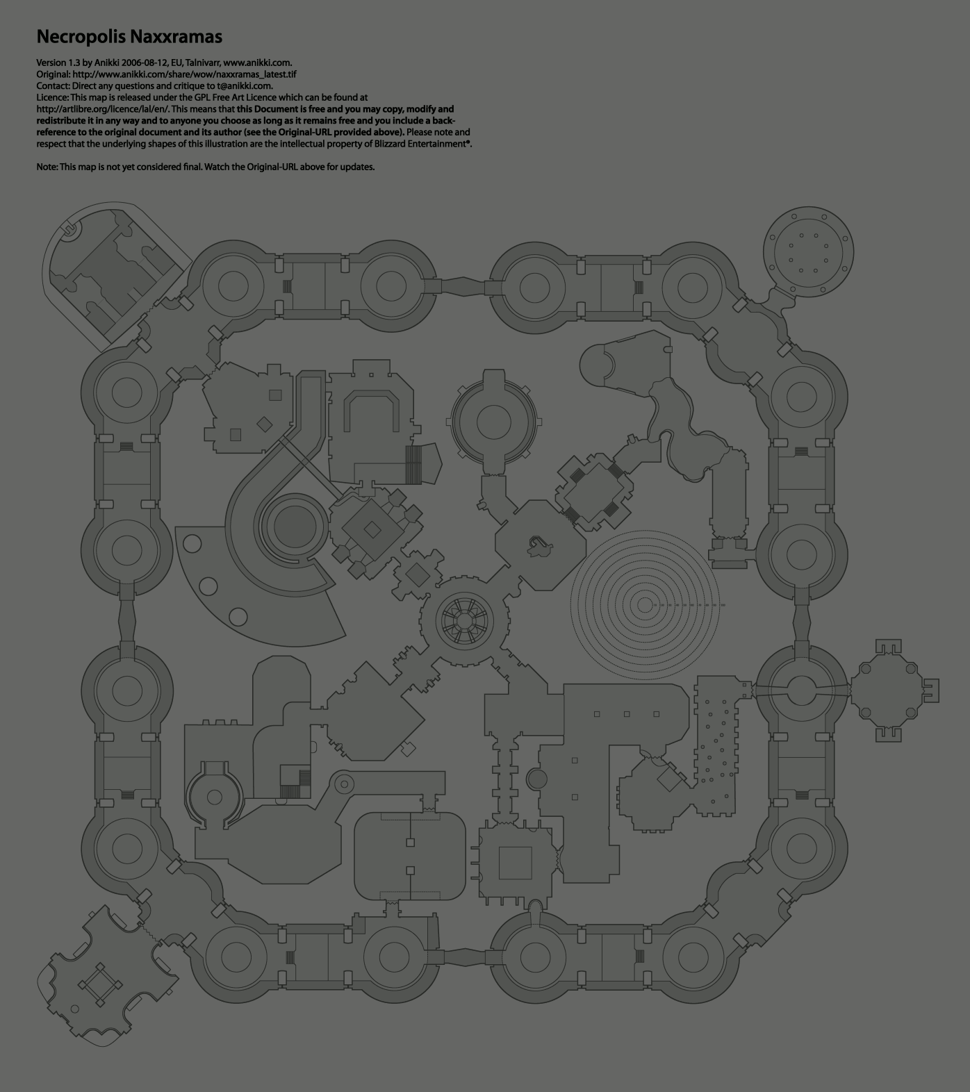 Naxxramas map with yards distance 10-100