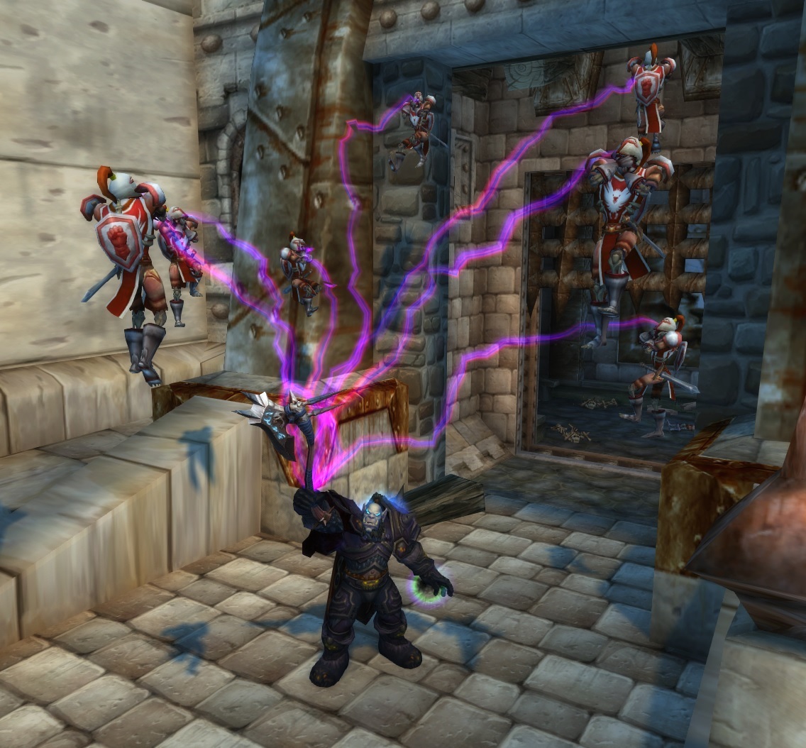 Upon arriving in the court of the Scarlet Monastery, Nazgrim once again Strangulates his foes. This time being the Scarlet Crusade.