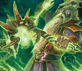 Among the necromancers of the Scourge, the former archmage Kel'Thuzad is the most notable example of a modern necromancer, who greatly contributed to the initial spread of the Scourge and the fall of Lordaeron.[7] The Lich King Ner'zhul granted these malevolent sorcerers true power over the dead in exchange for their loyalty and obedience.[11] The Cult of the Damned is the organization of living beings who served the Lich King, and was formed years before the Third War. These necromancers and acolytes aspire to become undead, and remain alive because undeath is considered an honor one must earn, and because living beings are useful for their ability to spy, and recruit powerful individuals from among the living.[12] Many modern necromancers were trained by Kel'Thuzad and his agents in the Scholomance beneath Caer Darrow. An elite branch of necromancers, under the command of the dark master Maleki the Pallid, refer to themselves as the Thuzadin, in honor of their lord and first of their kind, Kel'Thuzad.