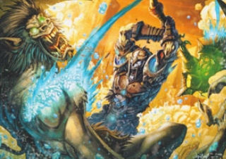 The ogre magi were originally a small band of extremely loyal ogre enforcers, transformed by Gul'dan into scheming and malicious sorcerers.[74] By warping and twisting the elf-magiks of the Runestone at Caer Darrow, Gul'dan was able to infuse the magical abilities of long dead warlocks into the bodies of these unsuspecting hosts. Once hulking simpletons, the transformed ogre-magi can direct their death magiks as easily as their lesser cousins would deliver a crushing blow to any foolish enough to stand in their path.[75]