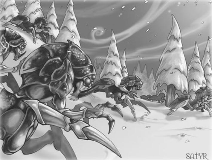 The vrykul king Magnar Icebreaker earned his surname from his battles against the nerubians in Northrend. While hunting nests of the insectoids, Magnar discovered that cracks in glacier walls could be turned into tunnels that allowed him to dig deep into enemy strongholds and launch surprise assaults on them from within. Years later, remnants of the nerubian armies once again began emerging from their caves, seeking to seize Ulduar and the titan machinery within it. Magnar, now a king wielding the Scale of the Earth-Warder, led his people against the insectoids, pushing them back to the entrance of Azjol-Nerub itself and defeating them so thoroughly that they ceased all aggression for millennia.[8]
