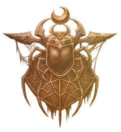 The spider is the most common motif of the nerubians, and they have appeared to have evolved at least partially into an arachnid race (eight limbs) from an insectoid race (six limbs). Despite the nerubian cultural association with spiders (who reproduce through any male and any female), they reproduce as social insects do, through queens.