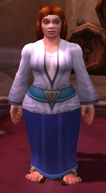 Nissa Firestone is a dwarf first aid trainer located on the top floor of the shop Ironforge Physician, on the southern side of the Great Forge in Ironforge.