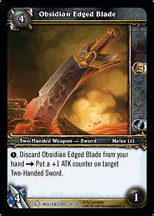 | Rules | 1, Discard Obsidian Edged Blade from your hand → Put a +1 ATK counter on target Two-Handed Sword. |