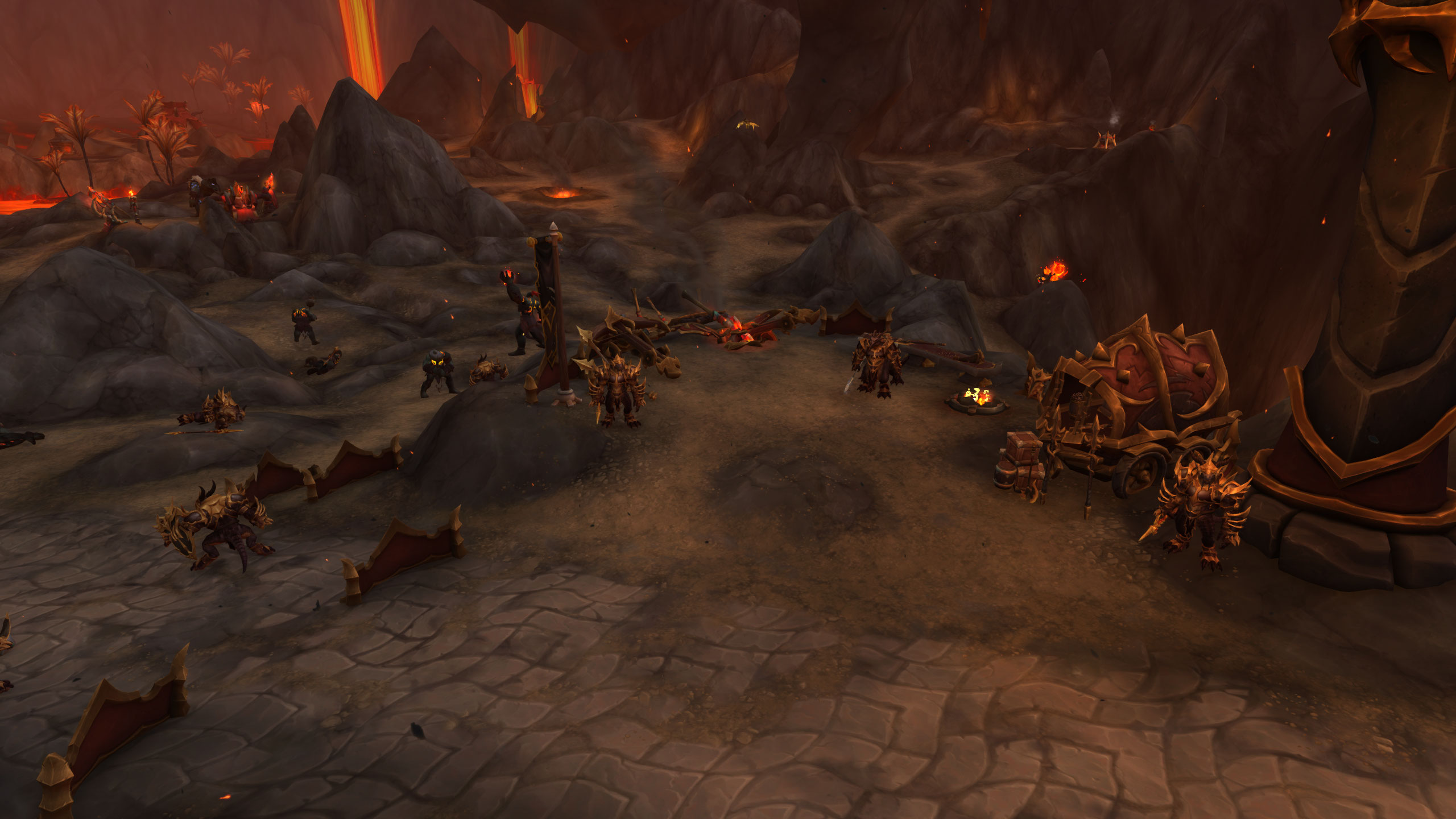 The area is bordered by Brimstone Garrison to the north and northeast, Obsidian Rest across the lava river to the east, Acidbite Ravine to the south, and the Battlefield Ruins to the southwest.