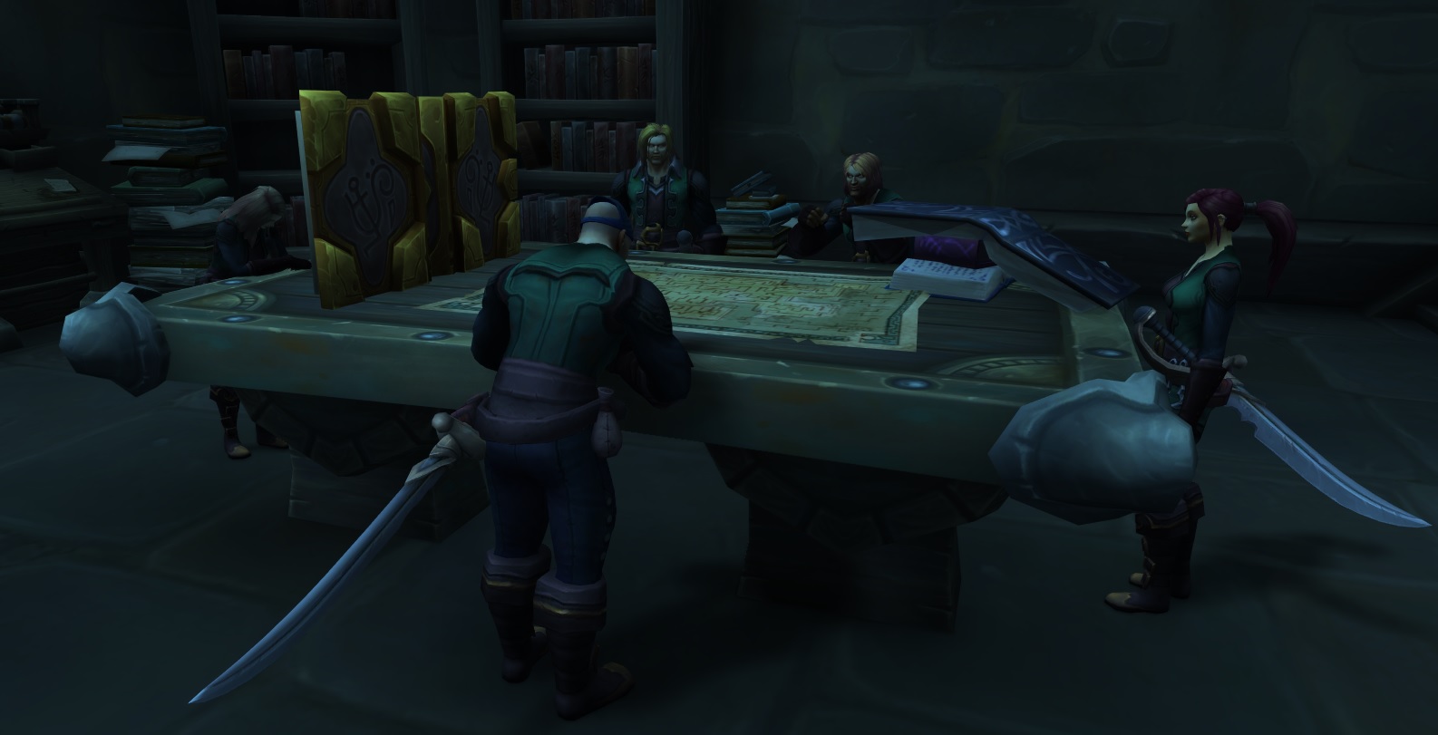 Off-Duty Cadets are humans located at the Proudmoore Keep in Boralus. A few of them can be found in a hidden basement in the hedge maze of the keep, playing a pen & paper game while their taskmaster is looking for them.