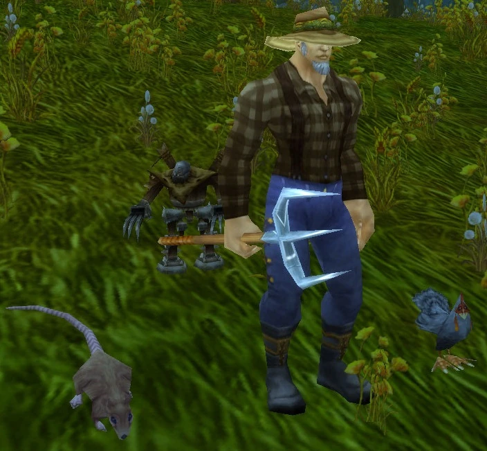 Old MacDonald is a master Pet Tamer located east of Jansen Stead in Westfall. He is surrounded by his three level 3 battle pets: Teensy, Clucks, and Foe Reaper 800.