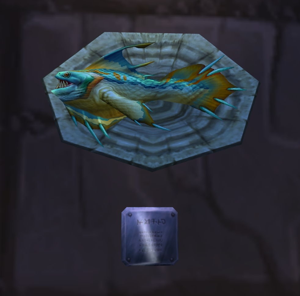 [Old Ironjaw], the most famous and elusive fish in the waters o' Ironforge's Forlorn Cavern. Well in his many years, he's been responsible for the rise o' many young ironjaws. Don't let the name fool ye, <name>, these young'uns are every bit as clever as their dad, but somewhat lackin' in experience.