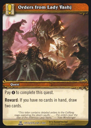 ![]() Full art (v) "This letter contains detailed orders to the Coilfang naga operating the steam vaults ... The orders bear the seal of the infamous Lady Vashj." - Ysiel Windsinger | |