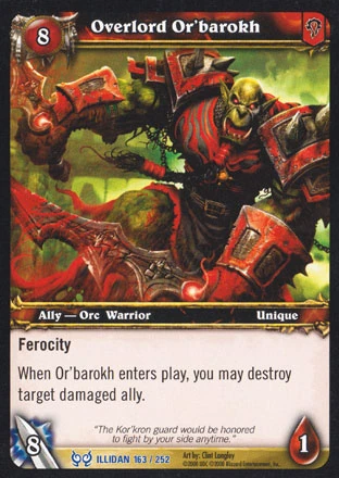 Ferocity When Or'barokh enters play, you may destroy target damaged ally. |