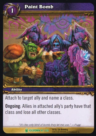 | Rules | Attach to target ally card and name a class. Ongoing: Allies in attached ally's party have that class and lose all other classes. |