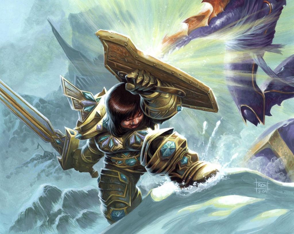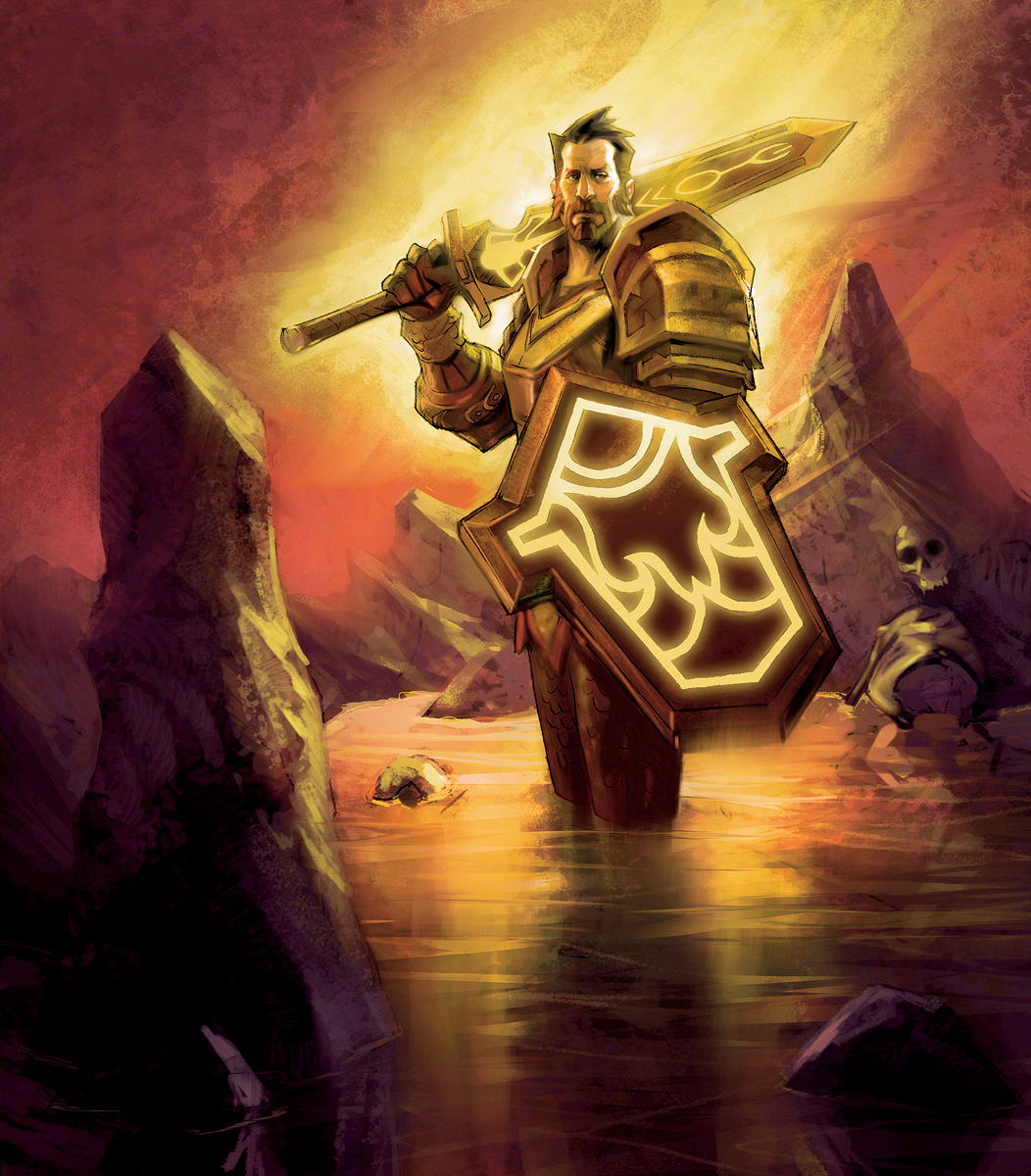 Like priests who serve the Light, paladins are devout in their faith. To serve as an instrument of the Light is to hold an unshakable faith. After spending much of their lives in hallowed halls studying divine doctrine, those who pledge themselves to a holy order become beacons of the Light for their allies in conflict, taking up the heavy armor and weaponry of justice. Stalwart and steadfast, these protectors are ardent defenders of the Light and all that it touches, and are rejuvenated by its radiance in return. So dedicated they are to their cause that they consecrate the very ground upon which they battle corruption. Holding the unwavering belief that any battle waged to eradicate evil in the world is righteous, these paladins stand on the frontlines in service to all others dedicated to the cause. The truth and virtue of the Light imbue these sacred knights with the power to revitalize their comrades. If necessary, they even lay down their own lives to serve as a martyr for the greater good. Oftentimes the most dedicated paladins become fanatical in their devotion, instruments of retribution against those who dare defy the laws of the divine. These vengeful guardians of the weak are crusaders judging and punishing the wicked. Their resolute conviction in the divine order of all things assures them that victory is inevitable—but they will fight to the end to ensure that the Light prevails.[17]