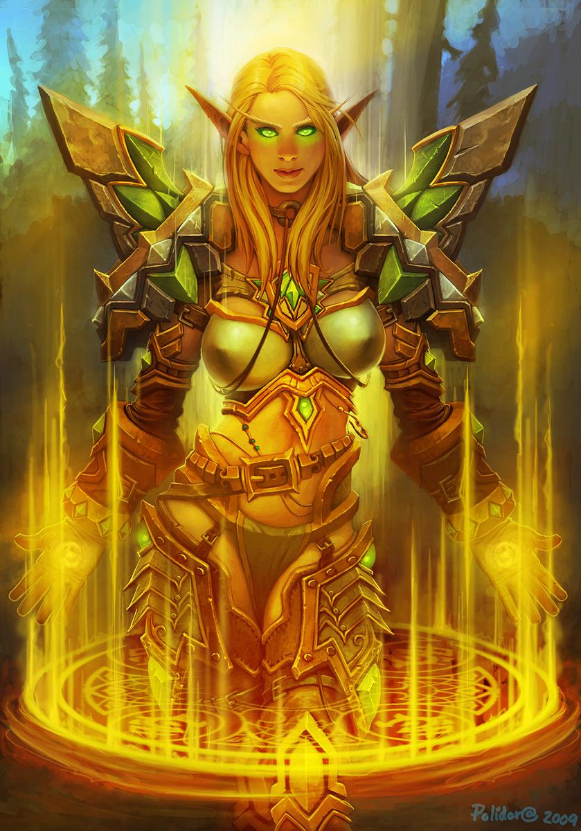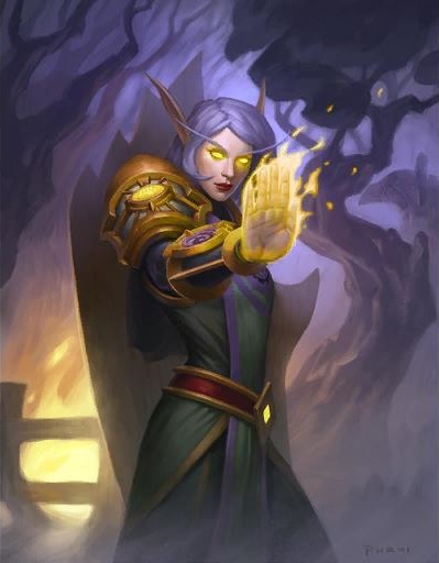 Not all wielders of the Light follow the same path. For example, humans and dwarves follow the path and faith of the Church of the Holy Light, while the tauren Sunwalkers revere the sun god An'she, whose power can appear either as red flames or as golden magic similar to other divine magic.[18] Among the blood elves, the Blood Knights embraced the renewed Sunwell, and through it they ask for the Light's blessing to wield their holy powers.[19] It is a harmonious relationship, no longer one of discord caused by the blood elves' attempts to bend the Light to their will by draining the energy of the naaru M'uru, which will likely have a positive effect on blood elf society in the long run.[20] In the Zandalari Empire, the Zandalari prelates once received their holy powers from the Loa of Kings Rezan, but since his death, it is their faith in his ideals that give them their powers, in order to stand as a beacon of light against the darkness.[21]