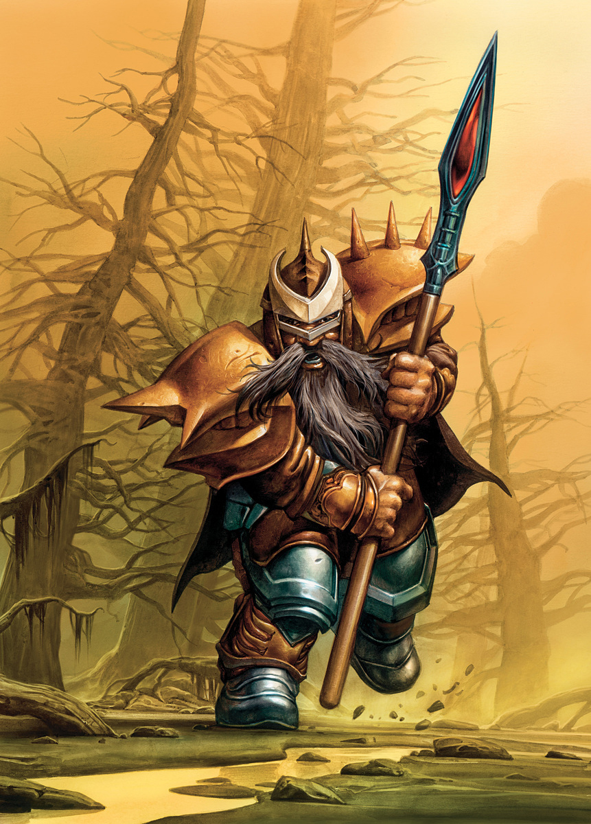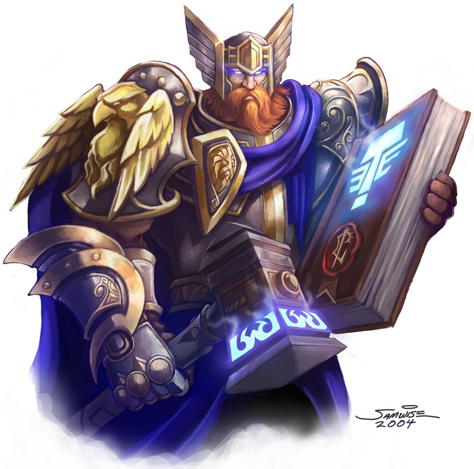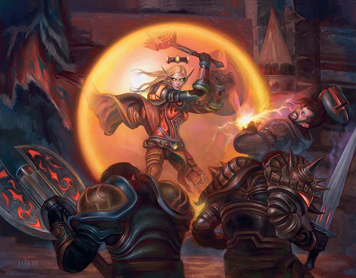 Paladins do battle to protect the world from the forces of shadow. Powerful warriors in their own right, they can also call upon the Light to heal wounds, create shields of force, and incinerate evil creatures. Although paladins were once exclusively human, a number of stout-hearted dwarves have recently been welcomed into the Order of the Silver Hand.[5]