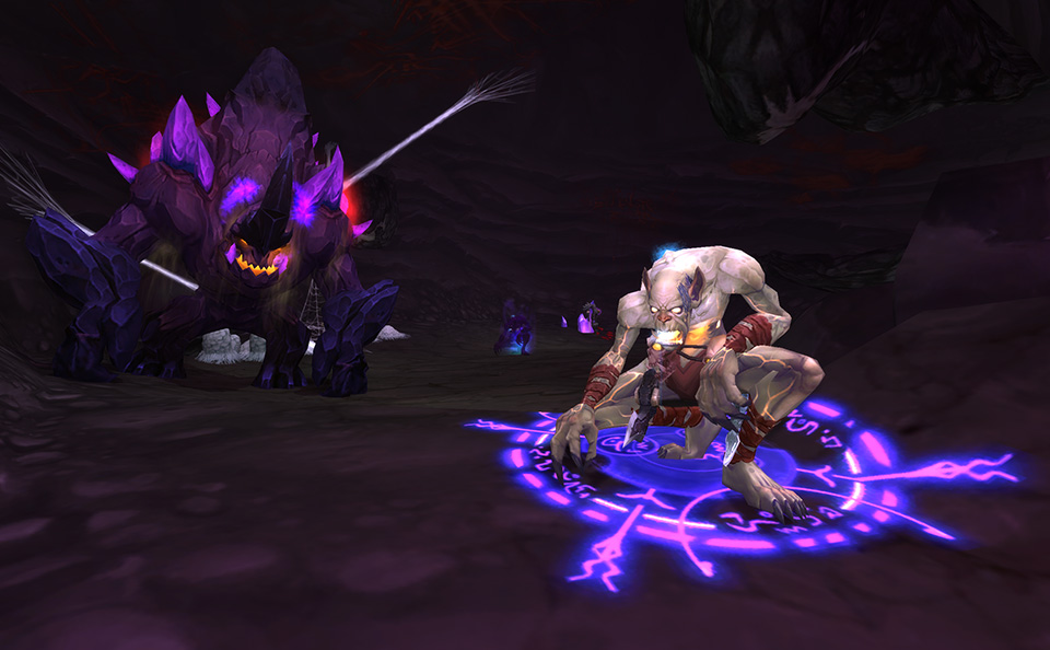 In the alternate universe, the pale orcs draw on the power of K'ure[12] and Cho'gall says that they are the key to subjugating him.[13] Cho'gall, referred to as "the master", has taught the Pale how to use the Void and through it enslave elementals.[14] After siphoning K'ure's power, Cho'gall led the pale orcs to attack the ogre capital, Highmaul.