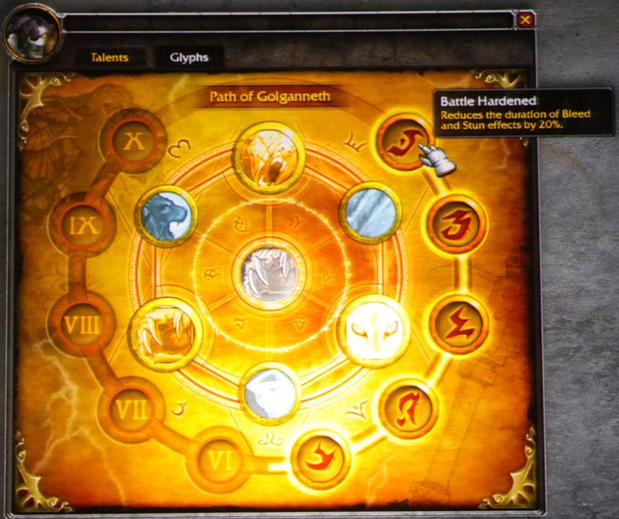 - Battle Hardened - Reduces the duration of Bleed and Stun effects by 20%.