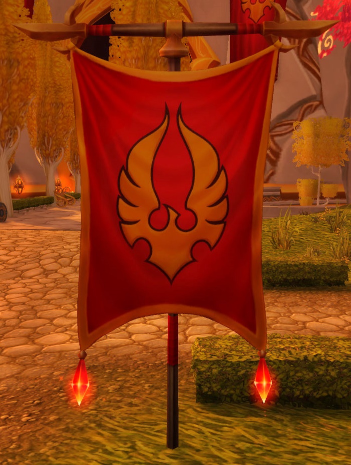 The phoenix as depicted on the blood elves' banners.