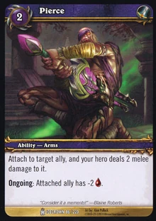 | Rules | Attach to target ally and your hero deals 2 melee damage to it. Ongoing: Attached ally has -2 [Health] |
